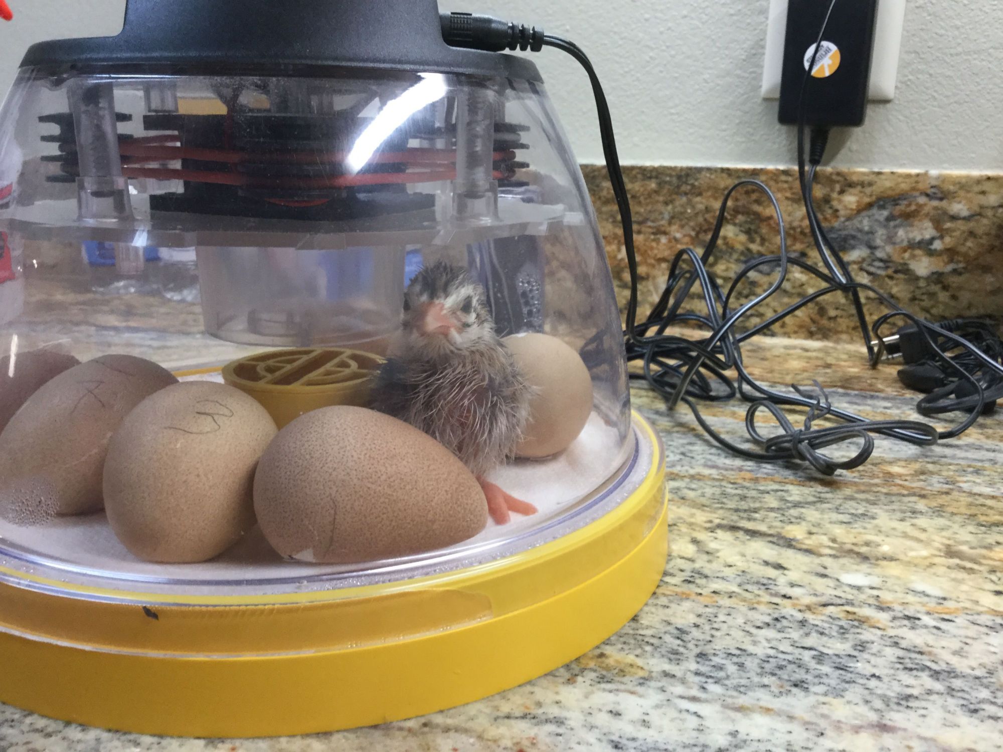 did they hatch? My DH does the same thing... says I am chicken obsessed but then I catch him over there chirping at the chicks and looking at the eggs. We had one struggle to get out and he did but then later died so that took a lot of the excitement away from the process. My DH is a big softy and it really bothered him to have the little one die after he made it out. I hope the remaining few eggs hatch with no issues.Sunny pj- this is my second and a half batch. First was in the incubator the next under a chicken hen and the hatched at the last moment in the incubator. But , yes, I'm excited! So cool to watch the process. I now have 4 pipped and I can hear peeping. Love it! I talk to them for encouragement. I would think that the DH would think I'm nuts but he does it too.![]()