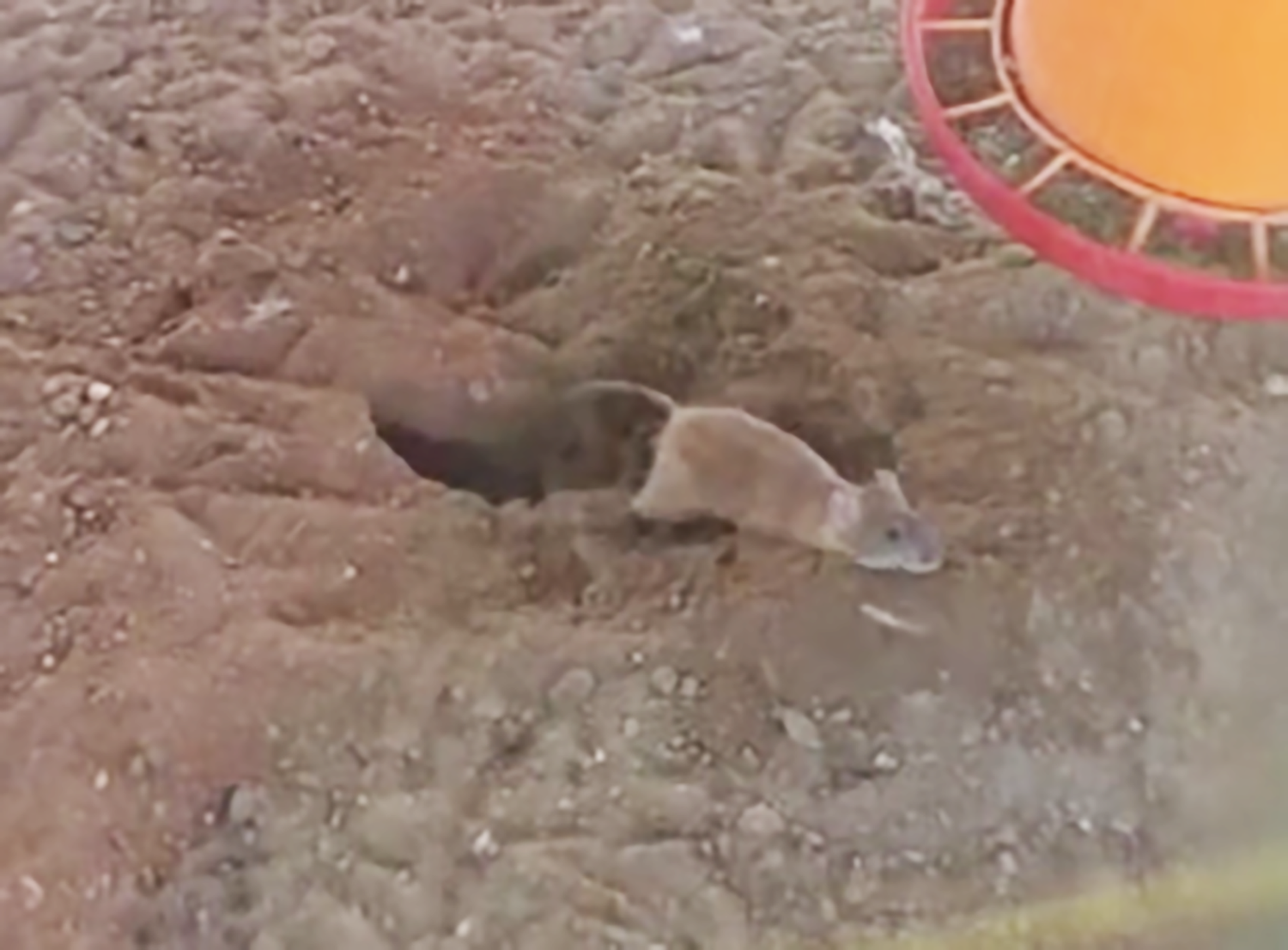 Well, he might be kind of fun to watch if he were somewhere other than your Peafowl pen. I just don't know, the head looks very rat-like to me, but the tail is too short. I wonder if he could be a plain old rat that lost the end of his tail, maybe to one of the cats?
