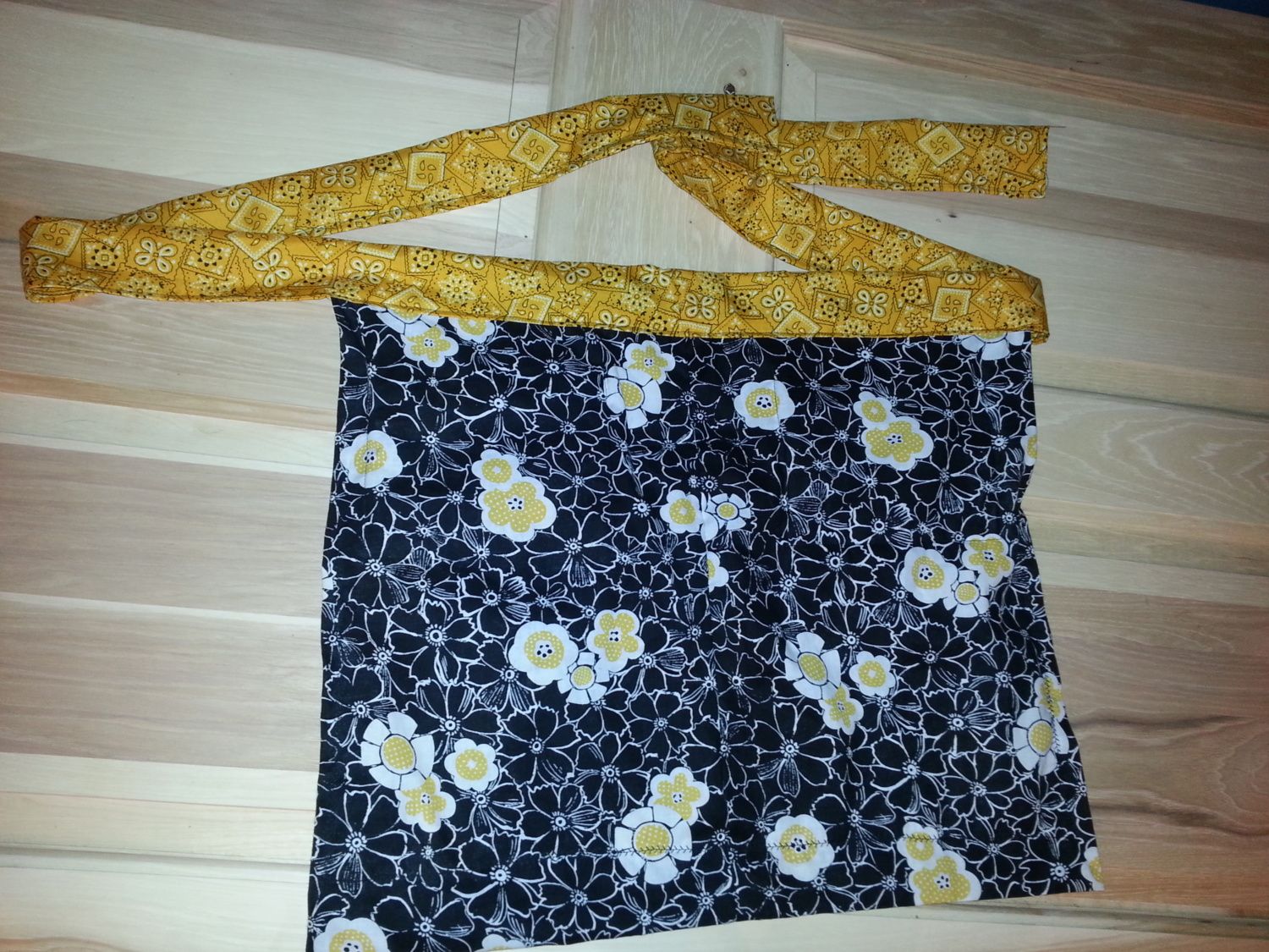 LOVE IT!!! I like having my hands free!!! and to be honest my chest is too big to have one that comes up over the neck AND I hate things around my neck, I know I am weird and not able to win it anyways, but just saying WHY I love it! plus I love the design and colors! I think we will do your apron and Cynths dish for prizes for the Pumpkin carving contest. Is there anyway we can get an image of it on someone, but without a face maybe? LOL not a big deal I can use those if not!This apron is full of imperfections. I didn't really measure or iron or pin anything. It will probably hold up to daily use and washing. It has two quilted pockets that should each hold about 6 chicken eggs. The large center pocket can hold lots of other goodies. I'm not a professional seamstress, and I wouldn't exactly call it etsy quality. Is this good enough for a donation?