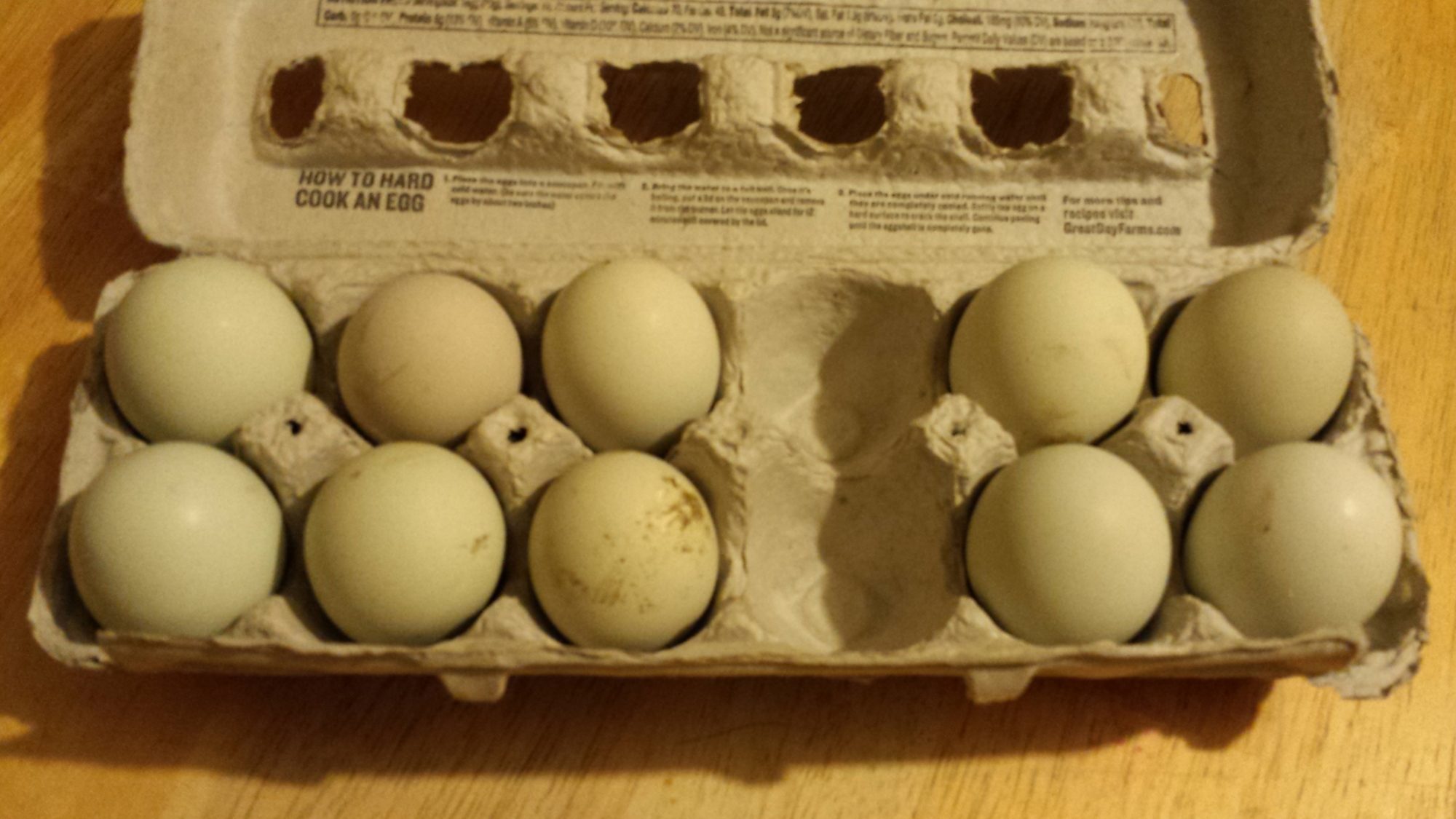 Doesn't someone here have pure Amers? Though I have them in the line and I get a blue egg, many are green or blue green. However I find EE's and Amers lay a large egg (2oz.) or smaller. I'd like to get them just a tad larger.