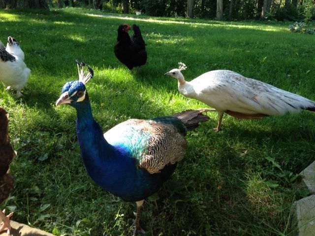 I am a new peafowl owner, sort of. Certainly new to hatching them. I got a male India Blue and a female Black Shoulder when they were roughly 2 months old in late June of 2013. So they are 2 years old. My hen laid eggs a couple of times back in June - but did it while she was up on her roost, so the eggs broke when they hit the ground 6' below. A few weeks later, she laid another egg - smash - and then laid 4 eggs while on the ground. I was very excited. I did not weigh them, but I put 1 under a broody chicken hen I had, and gave 3 to a friend who had a broody hen. I had little hope as I thought the parents might be a bit on the young side to have very good fertility.