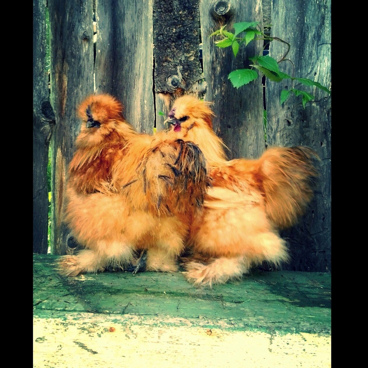 Text added in edit: These are our 24 week old Buff Silkie roosters, Mr. T and Dr. Zaius. Photos taken by my daughter, 13, with her mother's Samsung Galaxy S5. Not kidding.