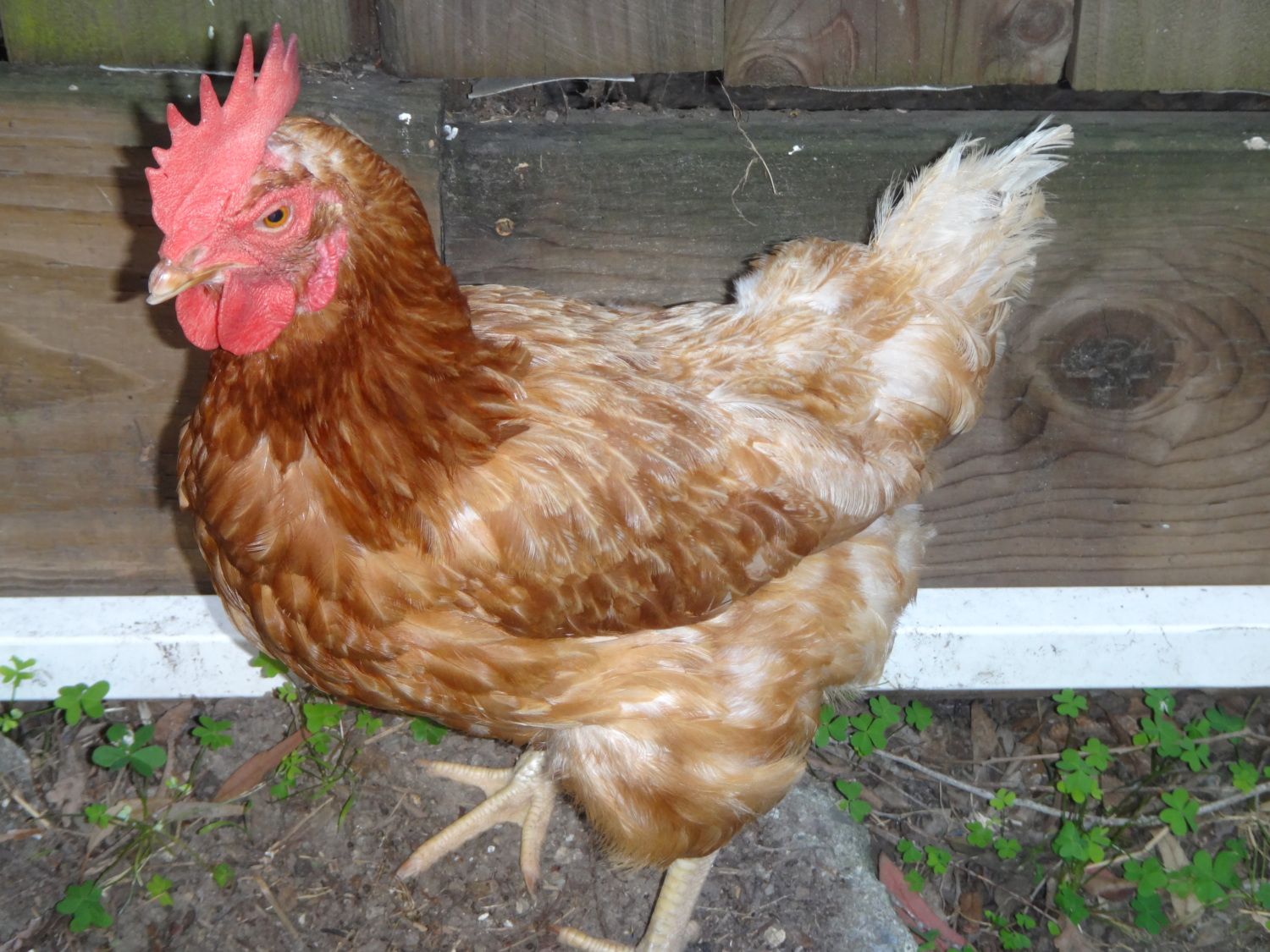 This is Clucky, a rogue sex-link that showed up on January 1 and started living in our back yard. She was a really sweet girl and made us love chickens, so we got her some friends. Unfortunately, Clucky died in July of a possible reproductive tract infection just 6 months after coming to live with us.