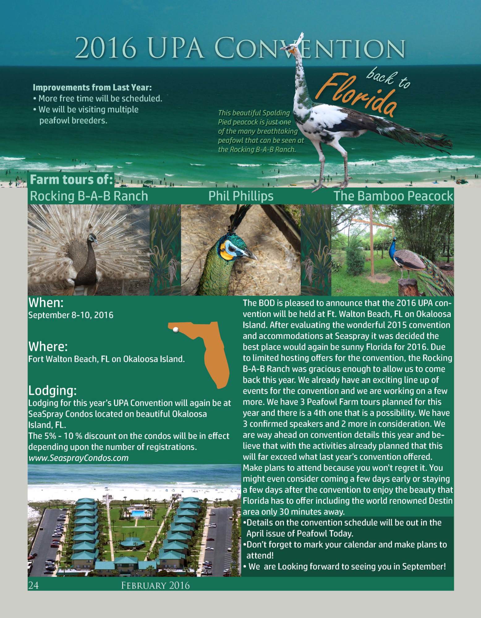 Oh and don't forget that you don't have to be a UPA member to attend the convention. I think AugeredIn said that what got him started in keeping peafowl was going to a UPA convention a few years ago and he wasn't a member.