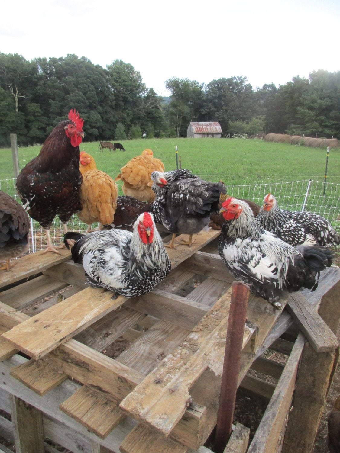 Here are my babies on a pallet structure that I made for shade and then they decided to use it a a perch.