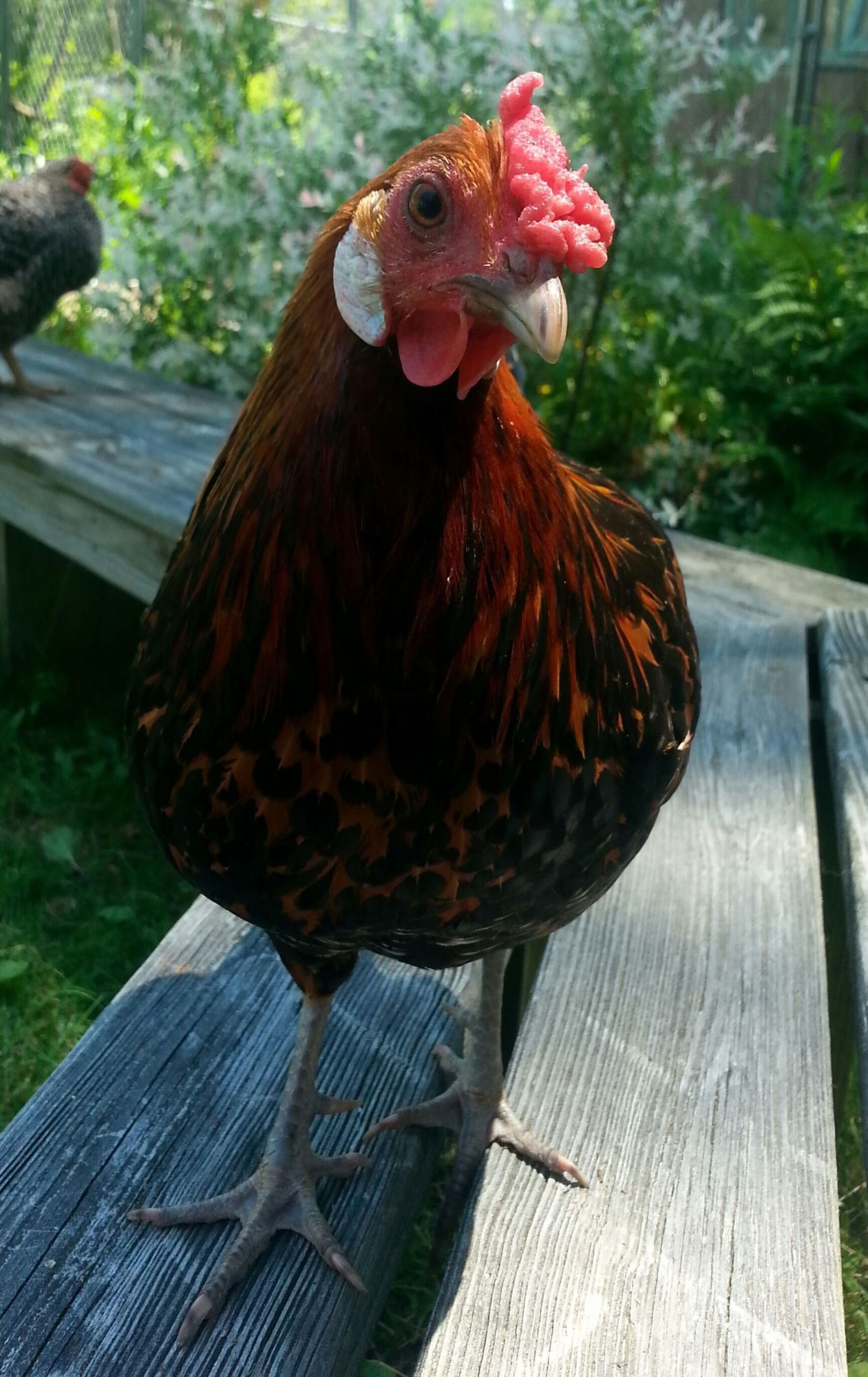 Golden Spangled Hamburg hen lost a battle with a hawk today
