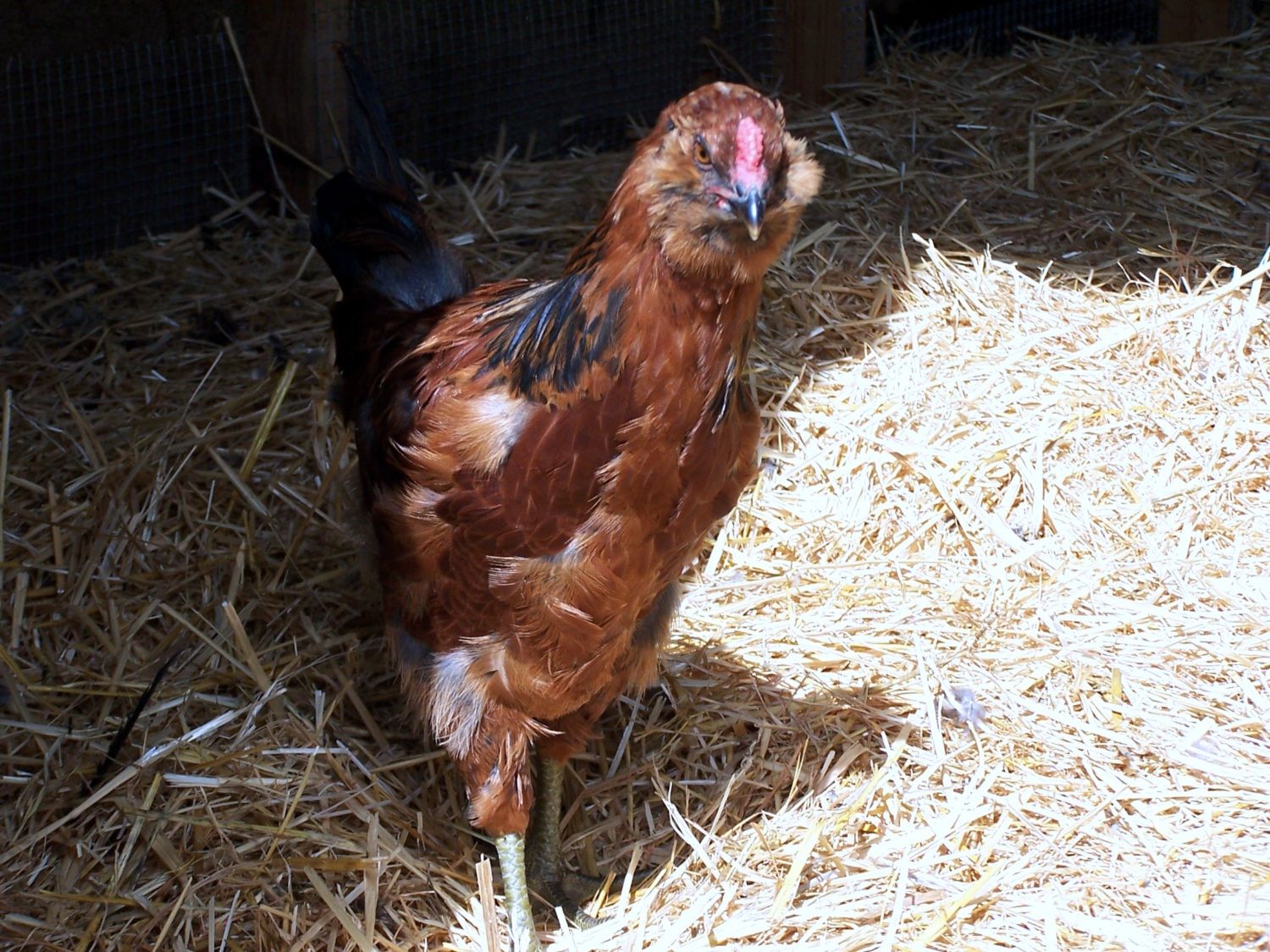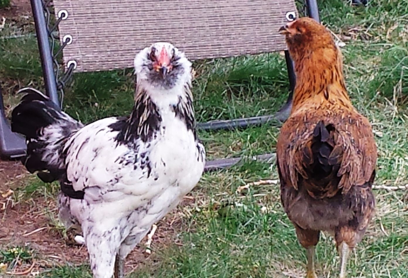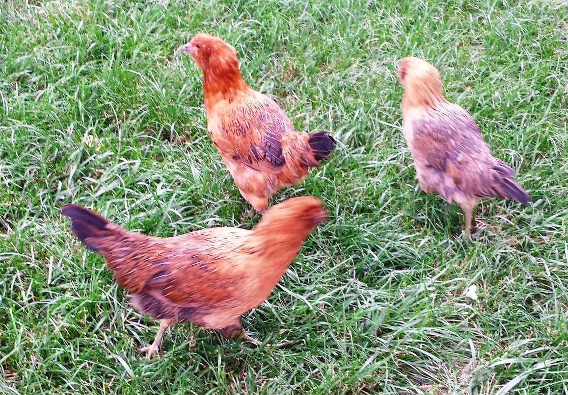 A very nice family gave me these four Ameraucana pullets. They were hand raised by her four kids and have wonderful personalities. I've had them for a month now, and I'm thinking that Chick-A-Dee (white and black) may be a rooster. She said they were Araucana pullets, but I'm pretty sure they are either Americanas or EE. What do you think? I'm hoping Chick is a pullet but if she's a he I'll keep him anyway.
