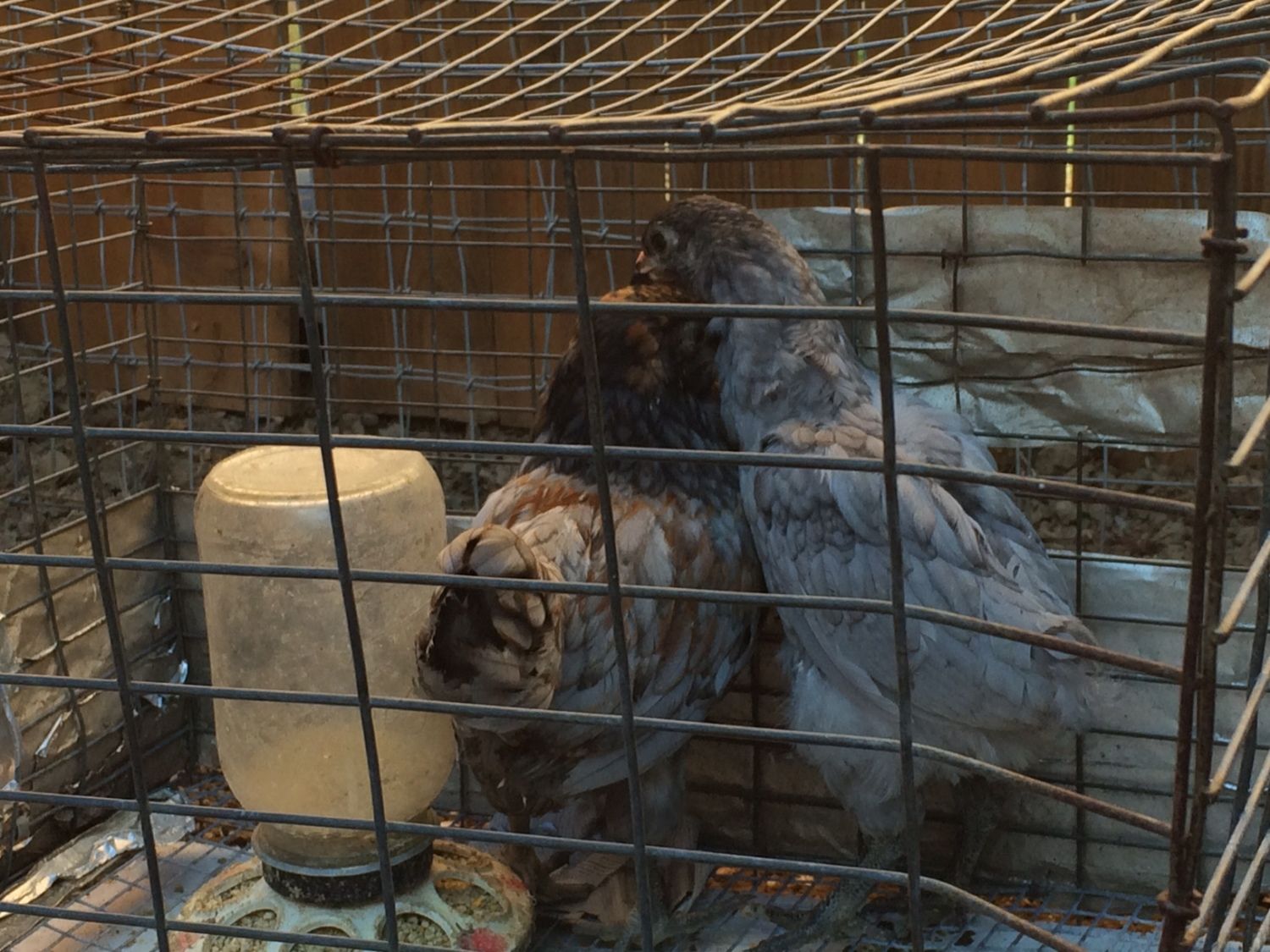 Also, they have different comb size and shape (I think), but we're wondering if the all gray/blue one (on the left) is possibly a cockerel? I'll try and add a profile shot, but the all gray/blue one has a shorter rump than the one on the right.