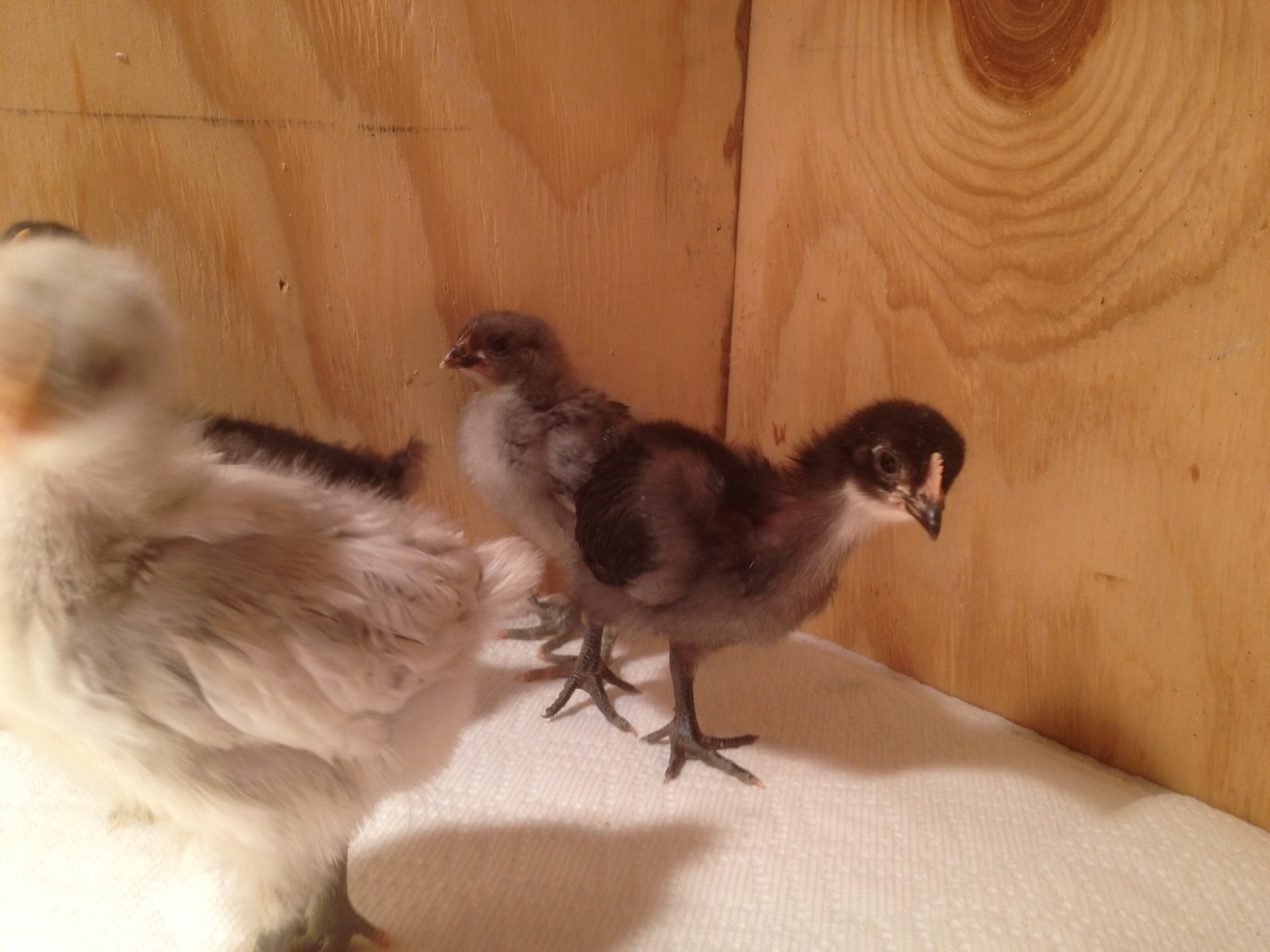 So I have five 3 week old chicks; 2 Black Orpingtons and 3 Marans (1 splash & 2 Blues)... Anybody want to weigh in on gender.... I think I hatched mostly boys.... of course....