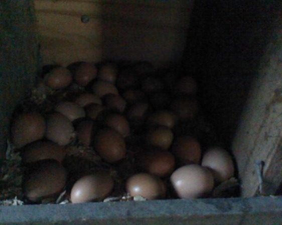 And is it normal for a hen to keep laying eggs, she's got the nest box plum full, some days the eggs are double stacked! LoL!