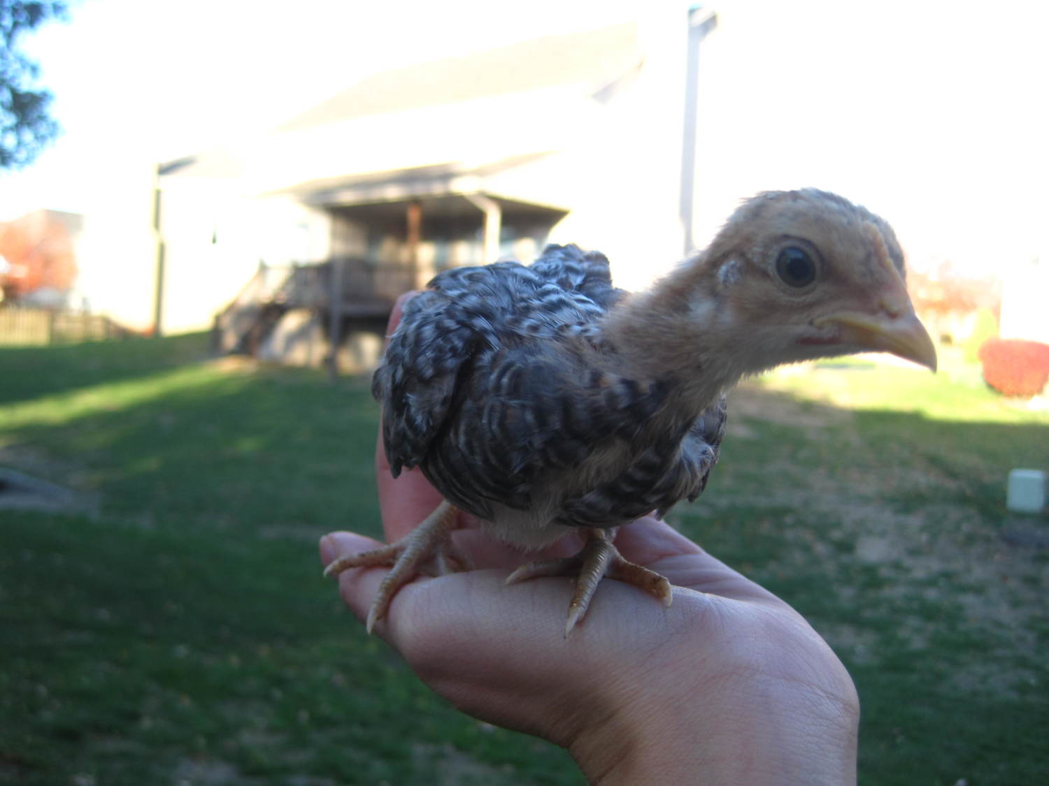 We have officially named our chicks. They're 3 weeks old already! One is a Crele OEGB and it's name is Blaze. The other is a Barred OEGB named Checkers. Right now I think they're both roosters.