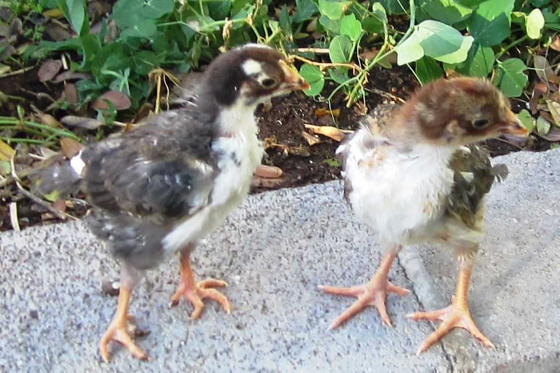 First up the only two surviving Swedish Flower Hen chicks. I'm guessing female on the left, male on the right.