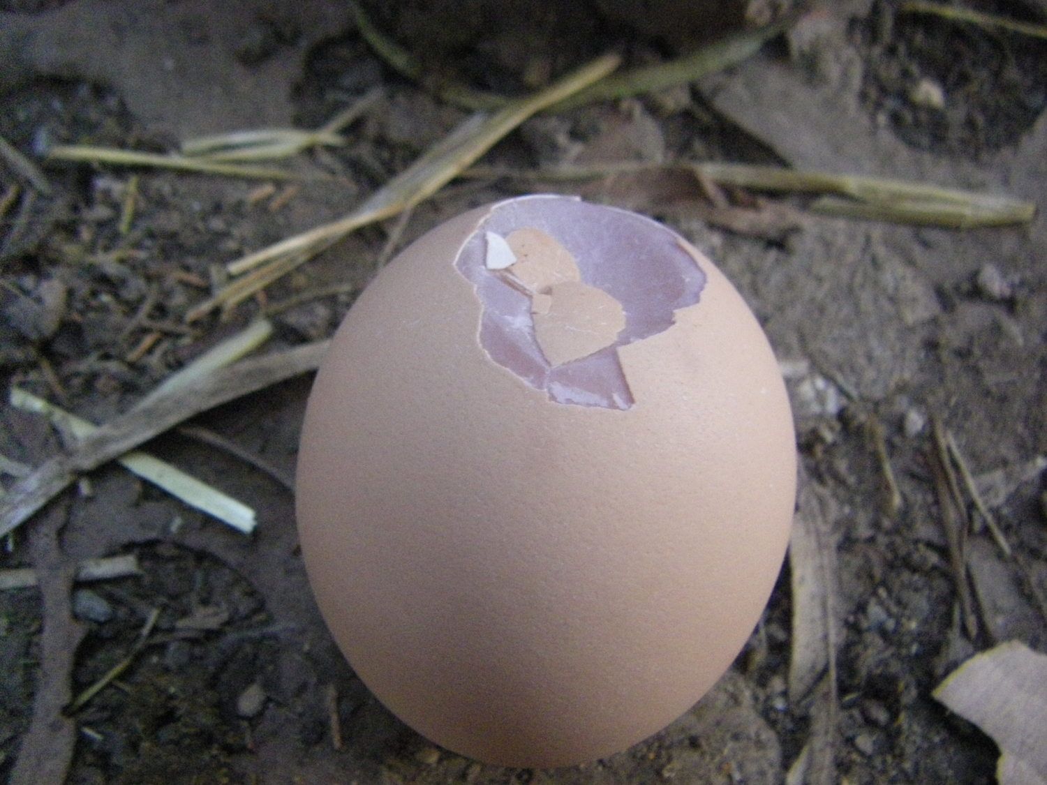 Be sure to have a nestbox with plenty of hay or padding. Also please tell me if you have ever seen yolk on a hen's rooster's beak. If yes, you make have an egg eater. Usually with the "eaters", you'll have a hole in it and this doen't have have this kind of appearance.it would be cracked egg shell unless by your walking by the "eater" was stopped