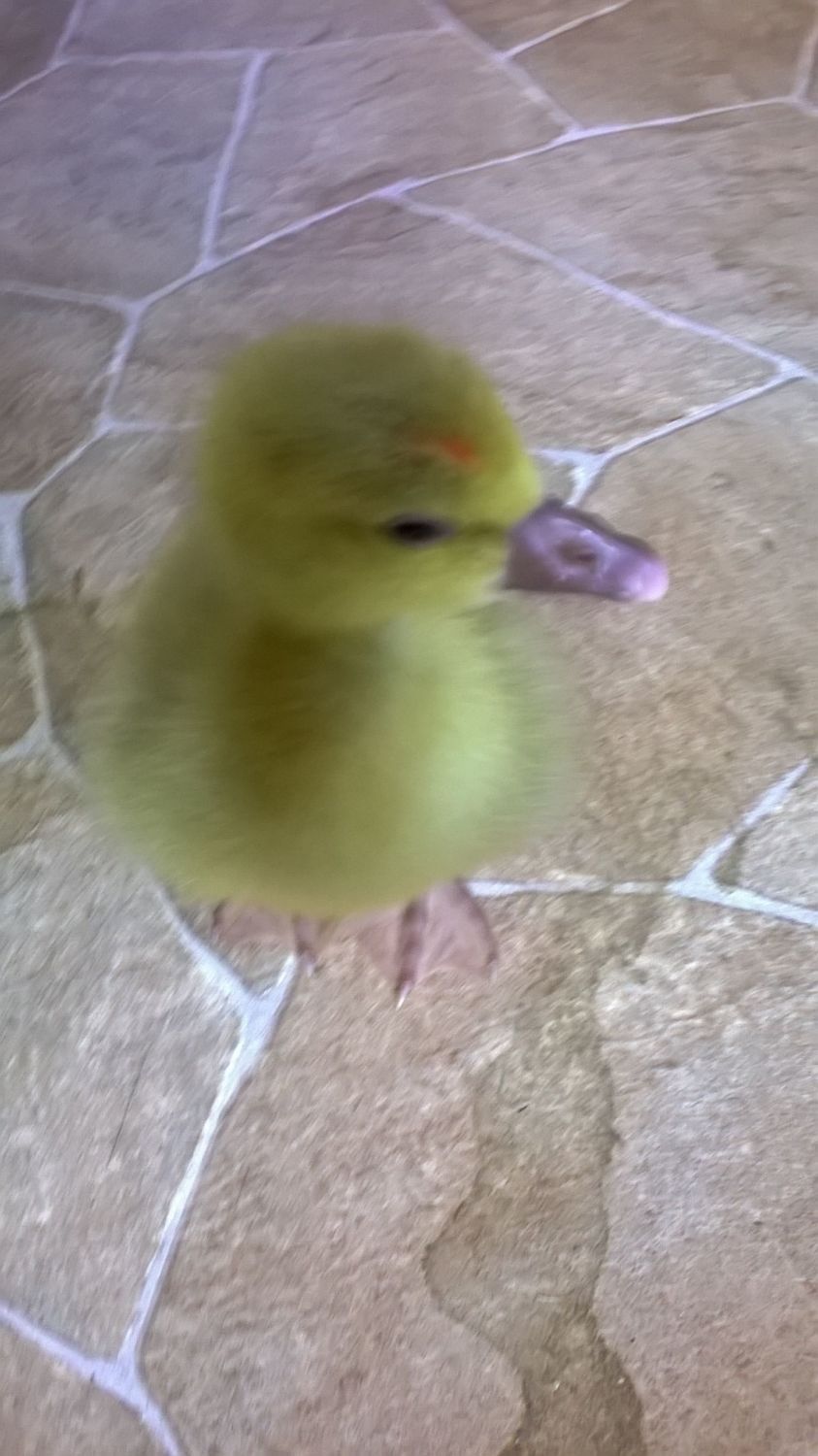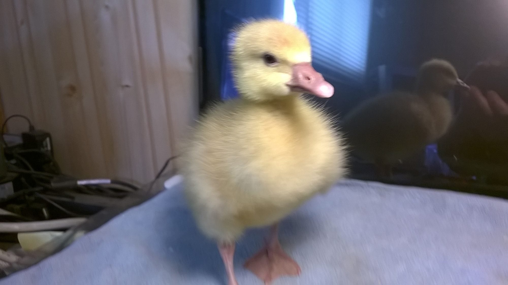 I bought a 4-day old gosling. She follows me everywhere just like the ducklings I hatched did. She cries until I pick her up. When I reach down she hunkers down, stretches her neck out, and says "pee pee pee" very quietly. Is she hungry? How do I get her to eat? At 4 days in the feed store with her hatchlings seems like she should be used to eating. She sure is a cute thing, seems to be very, very smart as well.