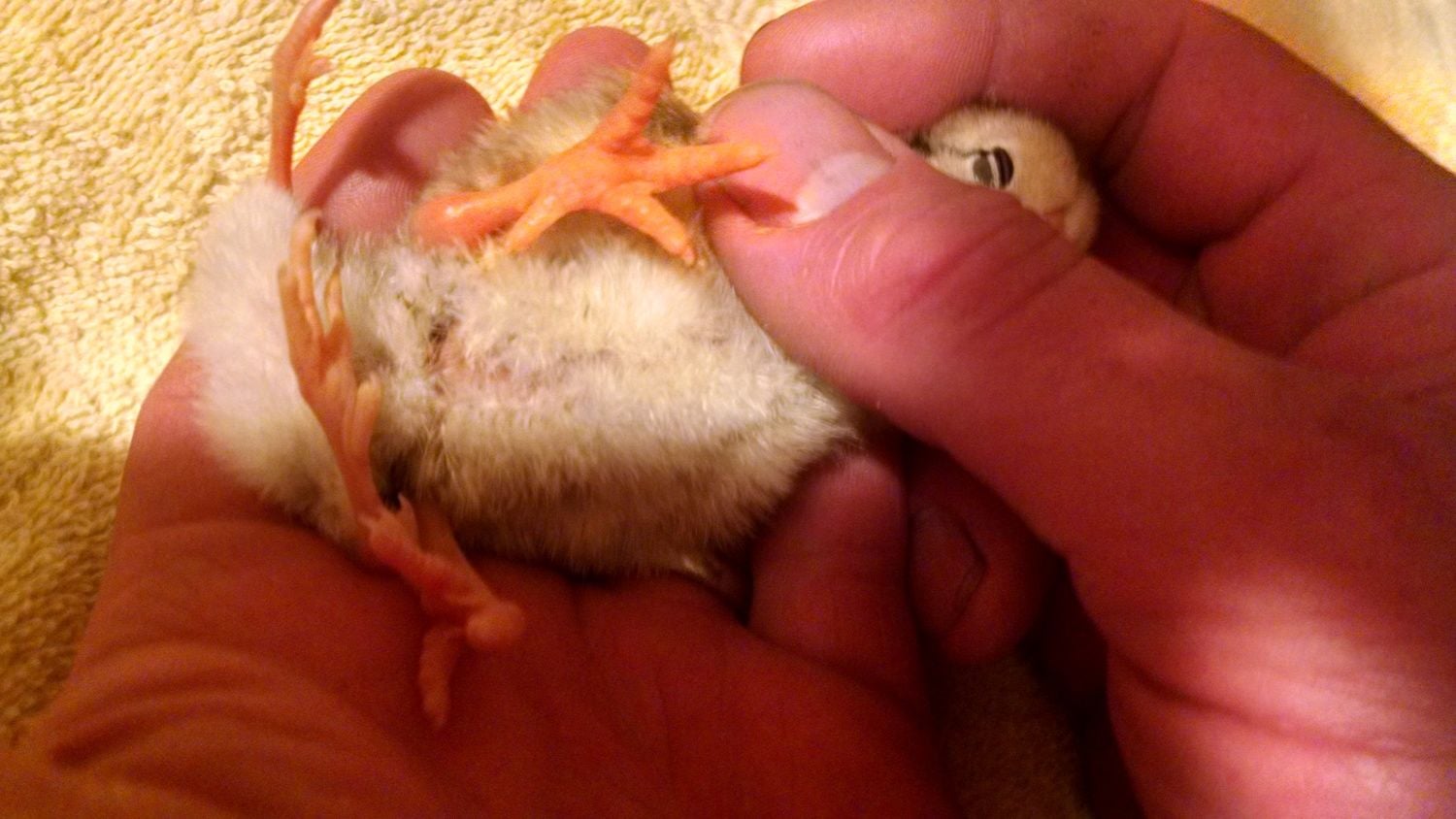 14 chicks hatched in same nest under same broody hen in a few hours 13 healthy, one deformed, a