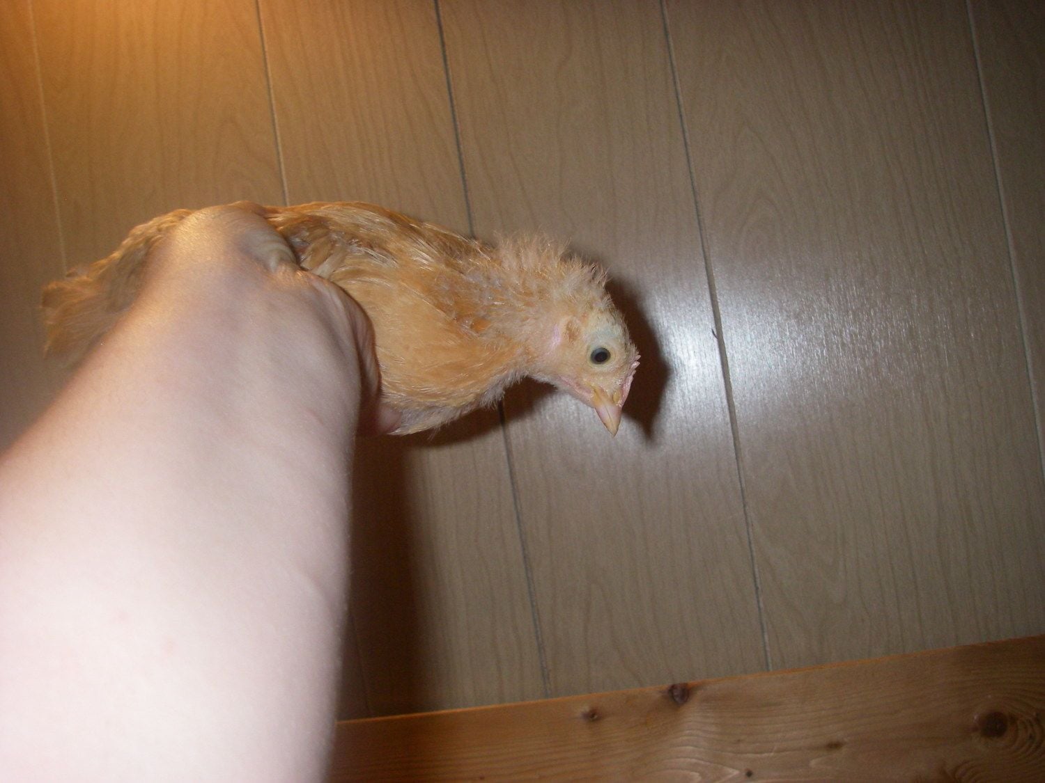 ^ Chick 4 Reddening at the base of the comb.