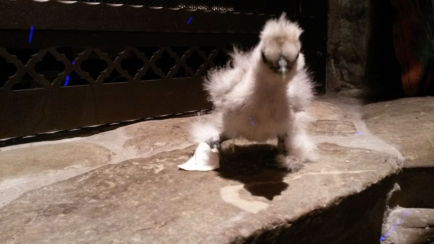 One week ago I bought some 3 week old silkie/frizzle/sizzle chicks from a breeder. She threw one in for free that had curled toes from an issue with her incubator. Before she gave it to us, she duct-taped it's feet so they were flat, and told us to take them off in about a week. I have raised chicks two or three times in a farm setting with 100+ chicks, this is my first hand-raised batch.