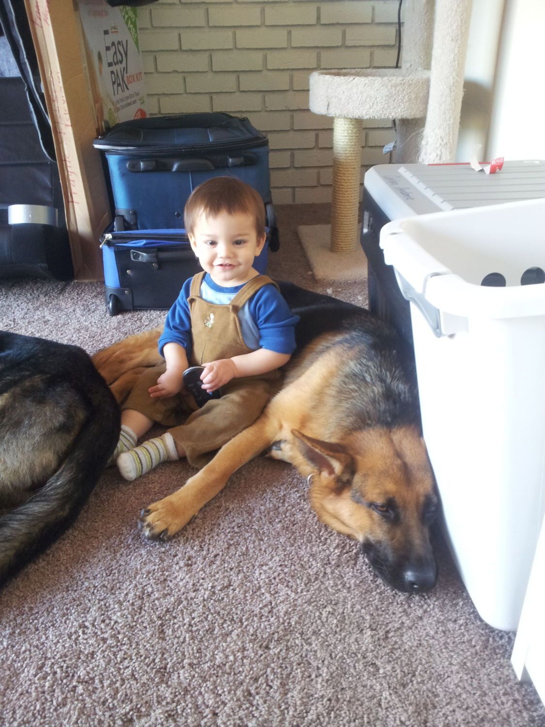 And another pic of my German Show line GSD Brewsky. She loves kids and would not hesitate to protect them or myself and is trained to do so. And a pic of Tain in the house putting up with one of my twin boys.