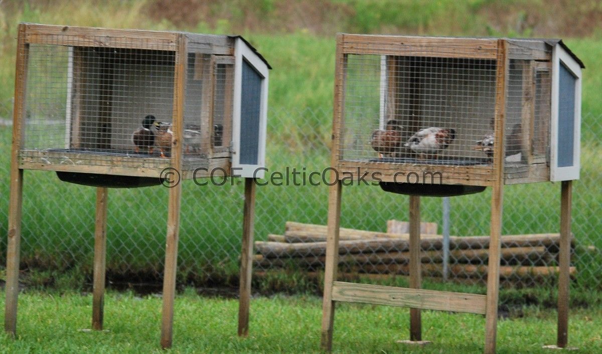 These are the raised pens we use, each has a 3 sided shelter space and an in floor pool (cement mixing pan). When the ducklings are young we add a ramp for them to get out and can remove it as they get older.