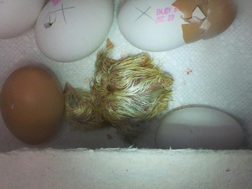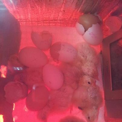 Last night around midnight I was blessed to witness a chick hatch for the first time! We call him/her Shellbert (although we don't know which one that one is now) because he/she had a little shell on his/her head like a hat. When I went to bed there were lots of other eggies peeping and pipped. I woke up this morning to find more chickies!!