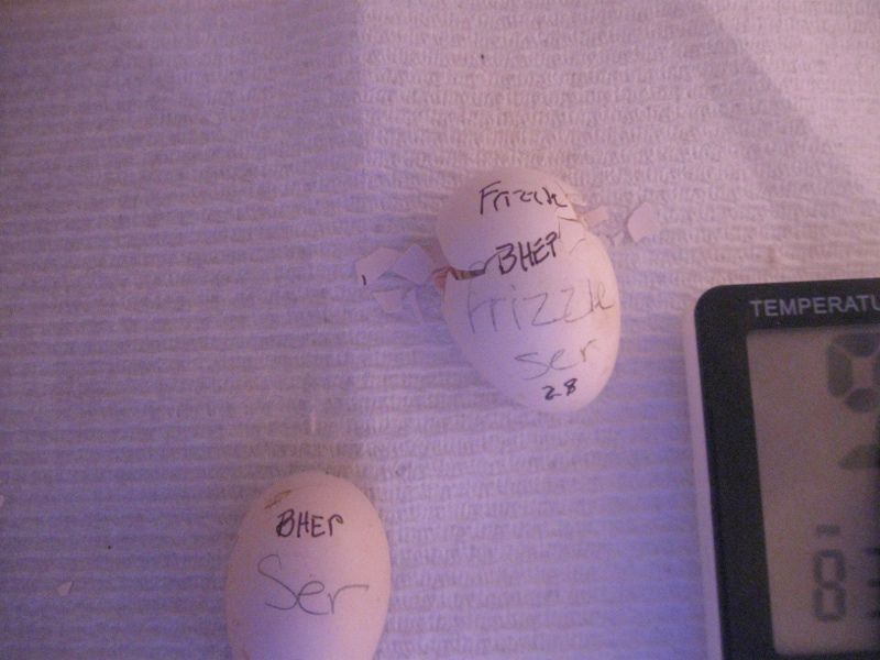 Good Morning everyone! Finished my chores enough to drop in ;) I set 19 eggs, 3 made it to lockdown (but one didn't look active at that time, turned out a quitter) and had 2 hatch. One hatched upside down, and in hindsight, I should have just made sure it could breathe and left the shell in tact sans the little hole for breathing and let him do his thing. Fortunately, despite my interference, he's doing great. Here are my pictures: