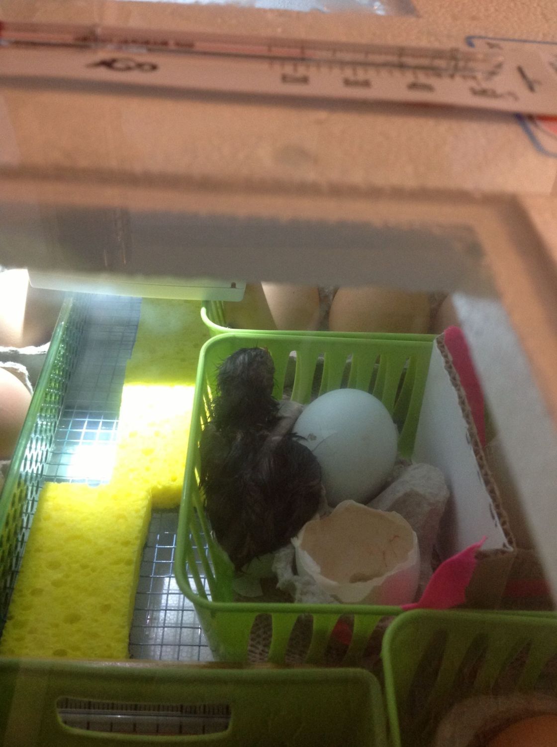 Just came inside from feeding/checking on the incubators. EGGCITING NEWS!!!!!!!!!!!!!!!!!!!!!!!!!! I have a duckling out, two chicks out (Serama, and a yellow chick..thinking a Sussex), a Button zipped and trying to come out...and lots more pips in the duck and chicken eggs!!!!!!! Y E A H ! ! !