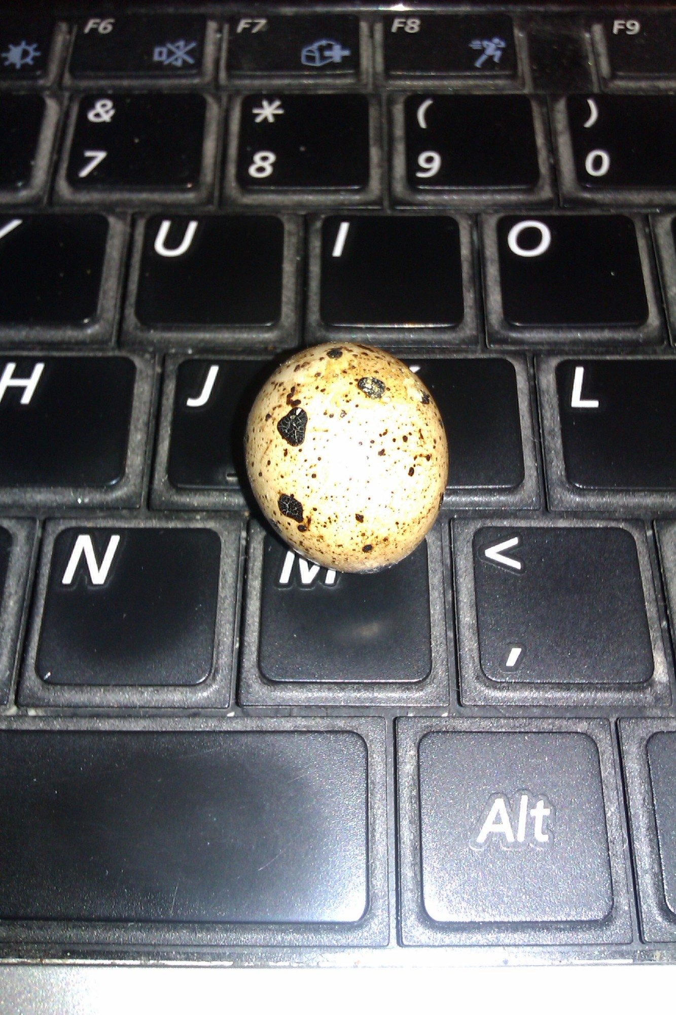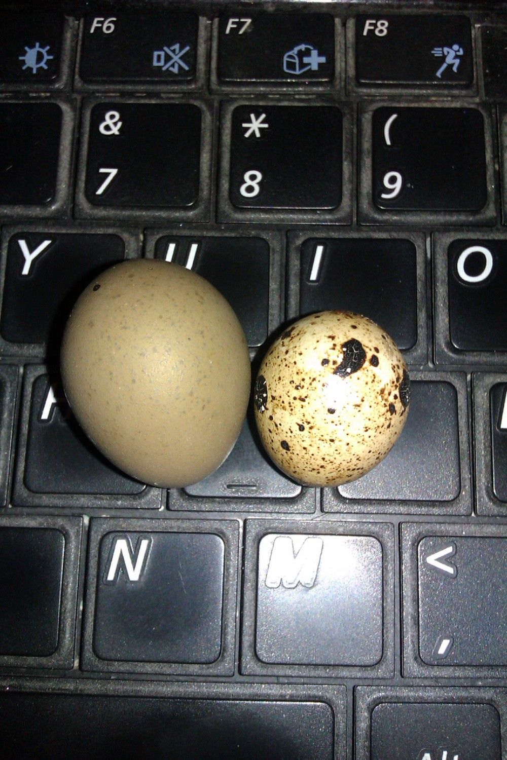 Thats a avrage to small sized lap top keyboard Its almost he size of a key Normal american penny I dont know how many of you have seen button quail eggs and realize how small they are but for those who can its a good size refrence.