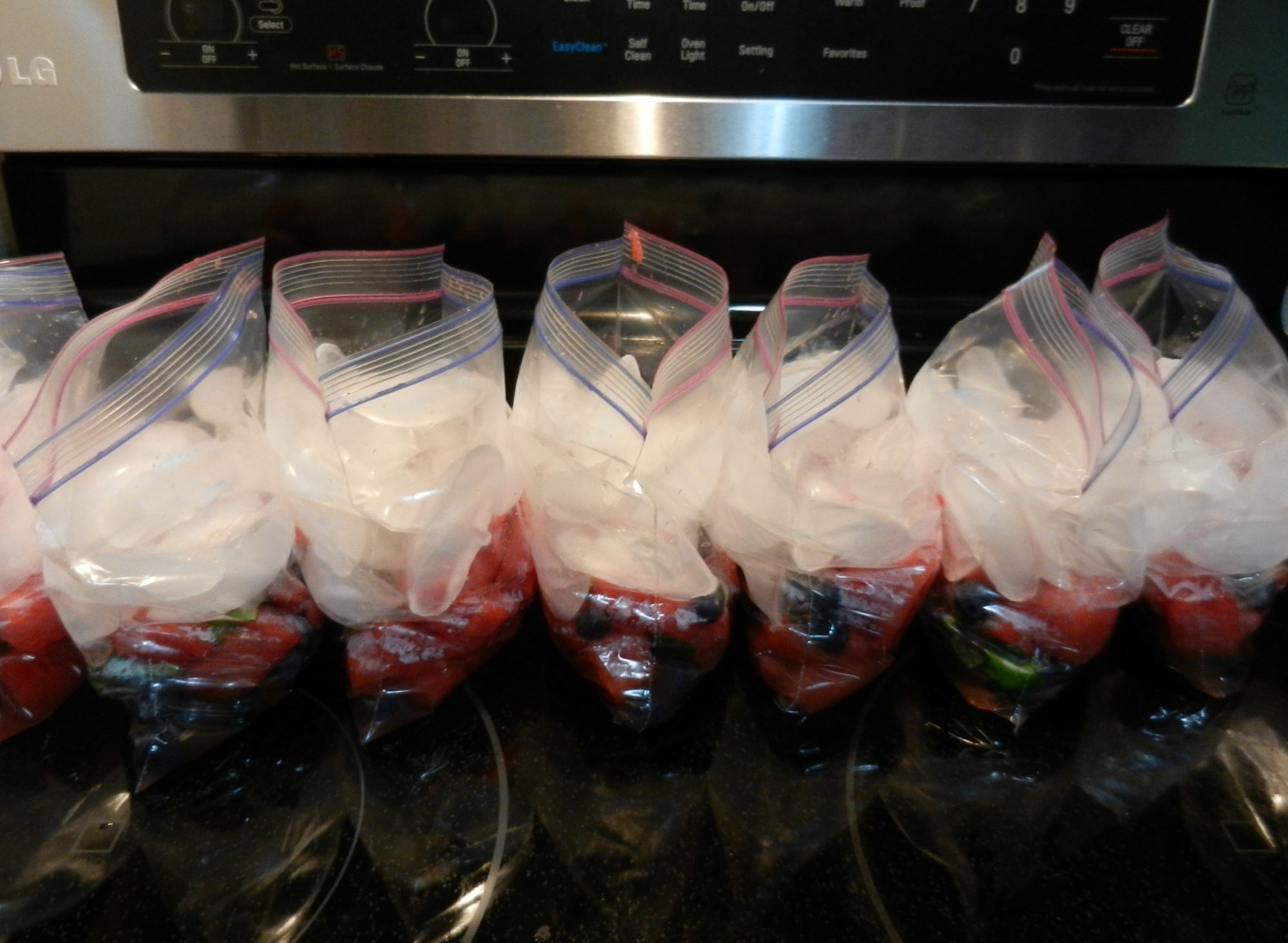 After that I added ice and water and put it in the freezer. The best part is that I made a bunch in individual bags to be used through out the summer on hot days.