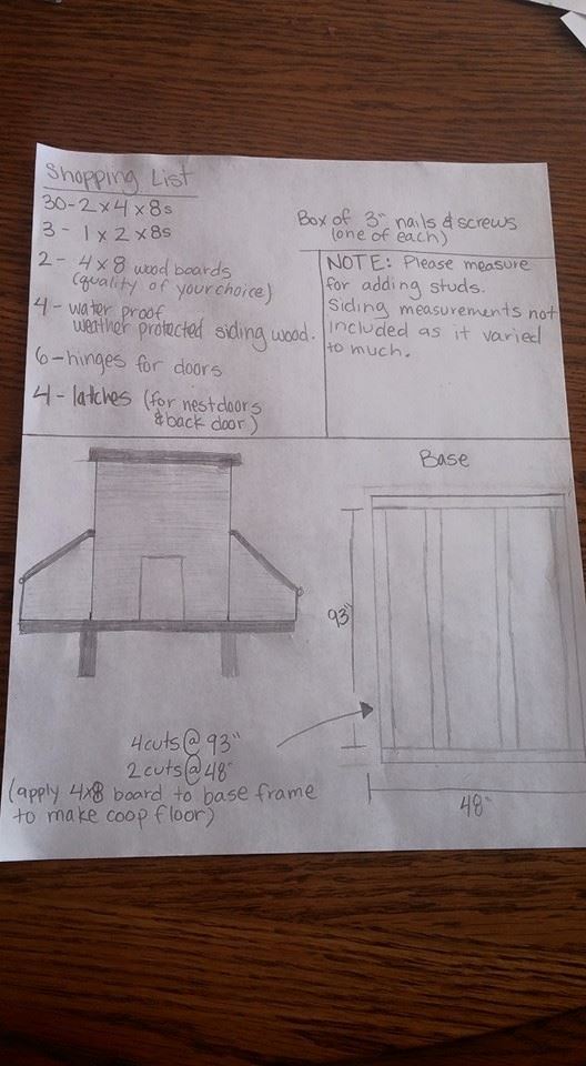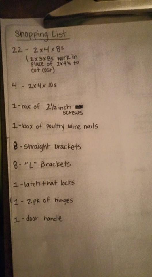 Edit to add, I got a TON of supplies from new construction dumpsters. The roofing fabric and materials, some of the wood,enough scrapps to make the nest boxes, etc. If you have any around you going up, its worth a raid :)