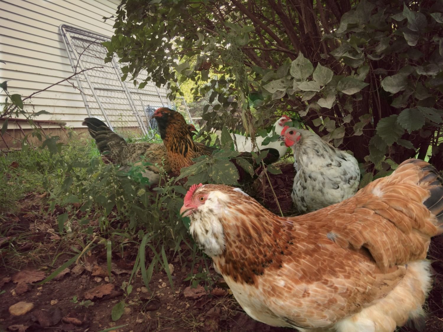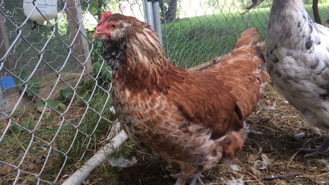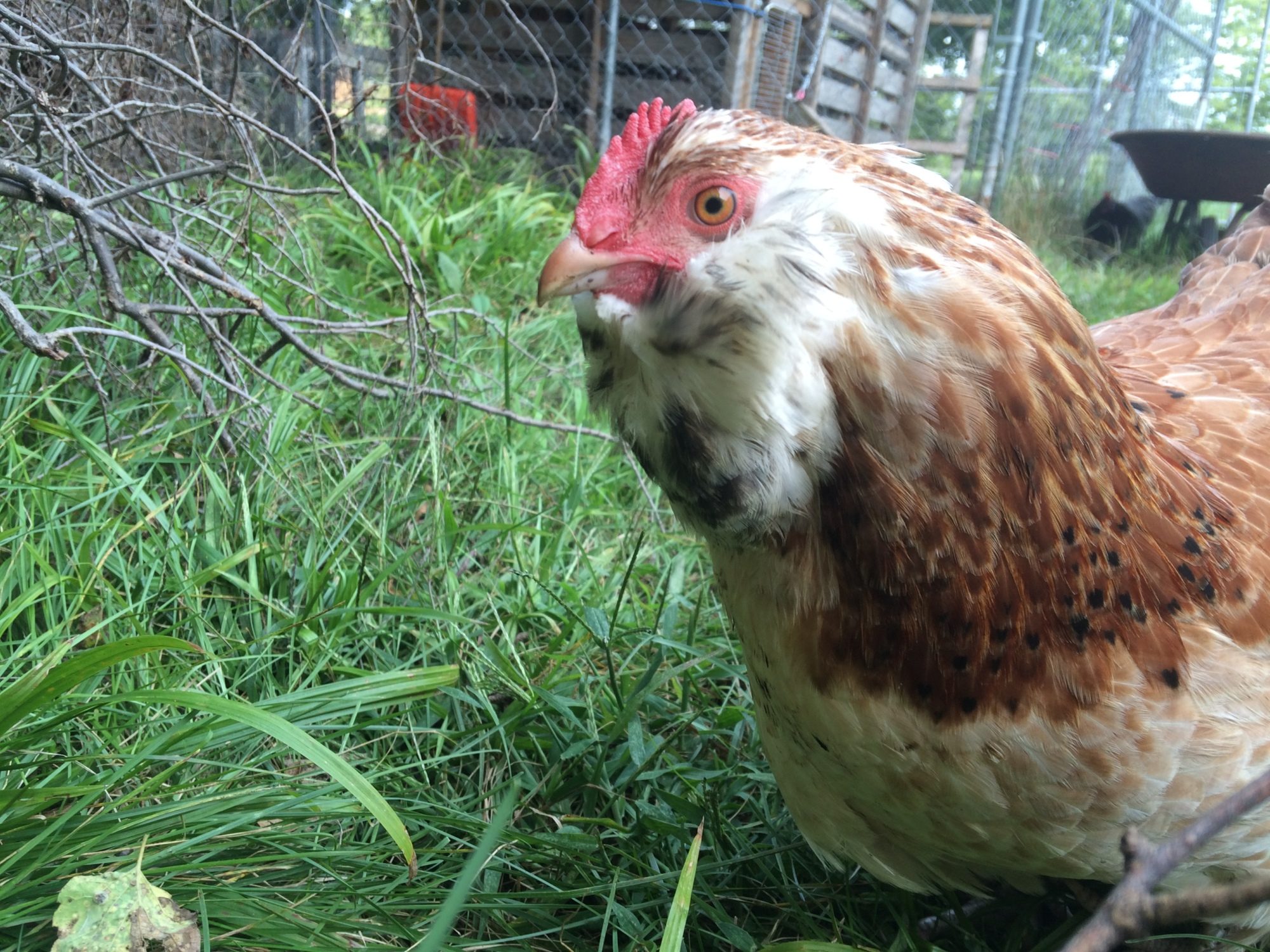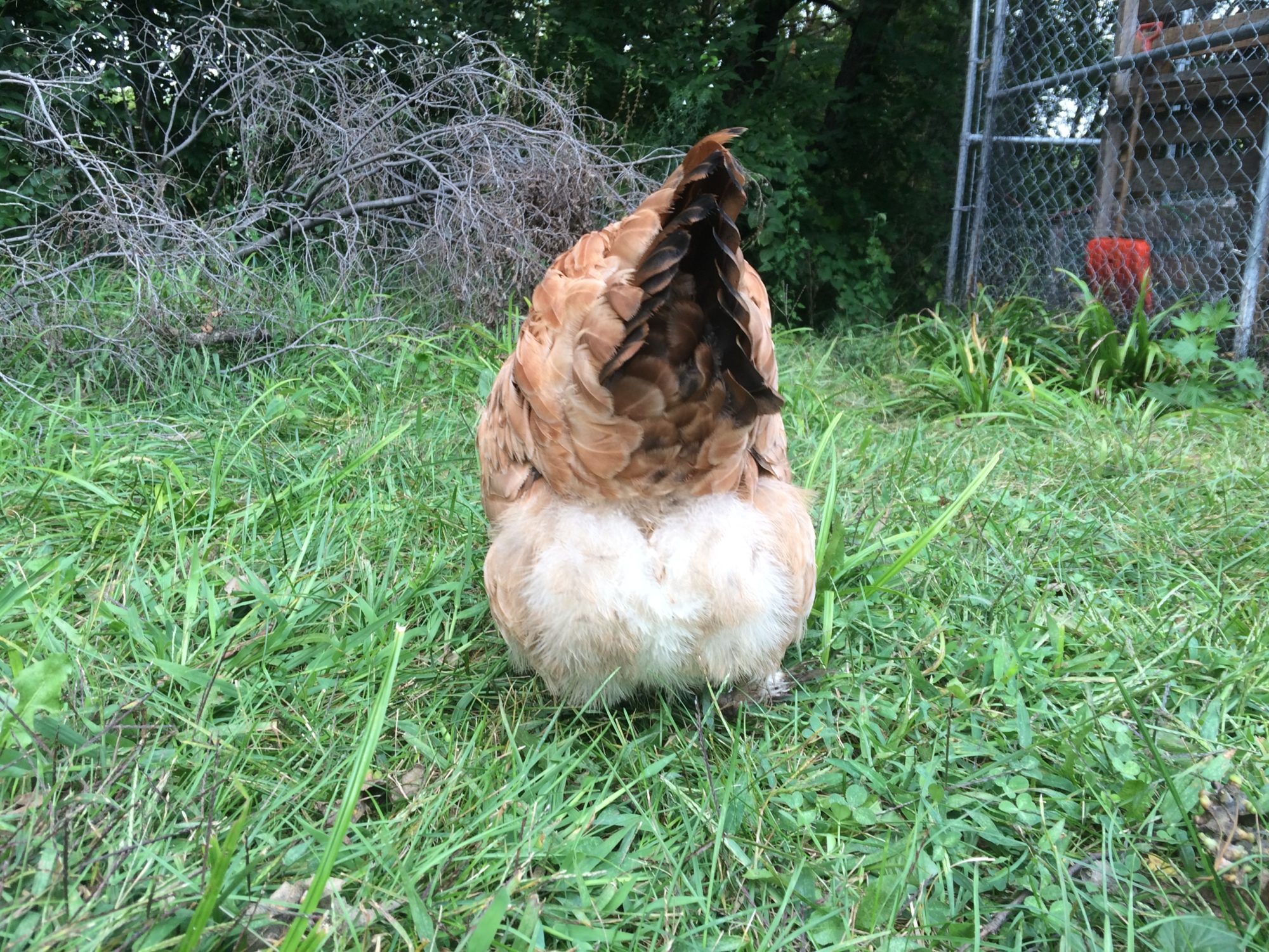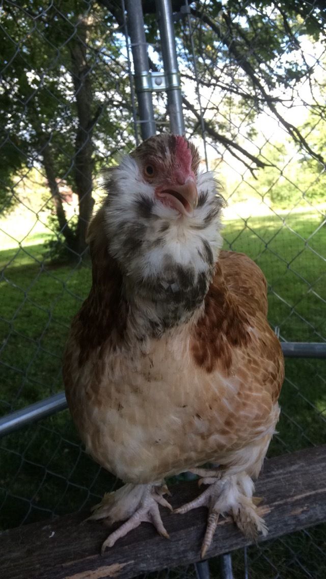 Here's a few pics of my faverolle girls. They are incredible and full of personallity. Tot makes me laugh every day. She's built very short and wide so when she walks/runs, she waddles like a penguin. She grew up thinking she was a rooster and before Daryl came, she crowed! She talks constantly to me, follows me around, is very easy to pick up, and lays daily, plus Tot is a perfect representation of her breed for a hatchery chick. Her sister, April, is also very docile but not as personable. She lays every other day, but has stopped with the light decrease (Tot is still going though). April has spots on her chest, which isn't normal for the breed so she wouldn't be one that I would breed but I still think she's gorgeous. They are towards the bottom of the pecking order, but they are everyone's favorites. What's weird though, is as chicks, they were both very nervous, skittish, and Tot was even aggressive!