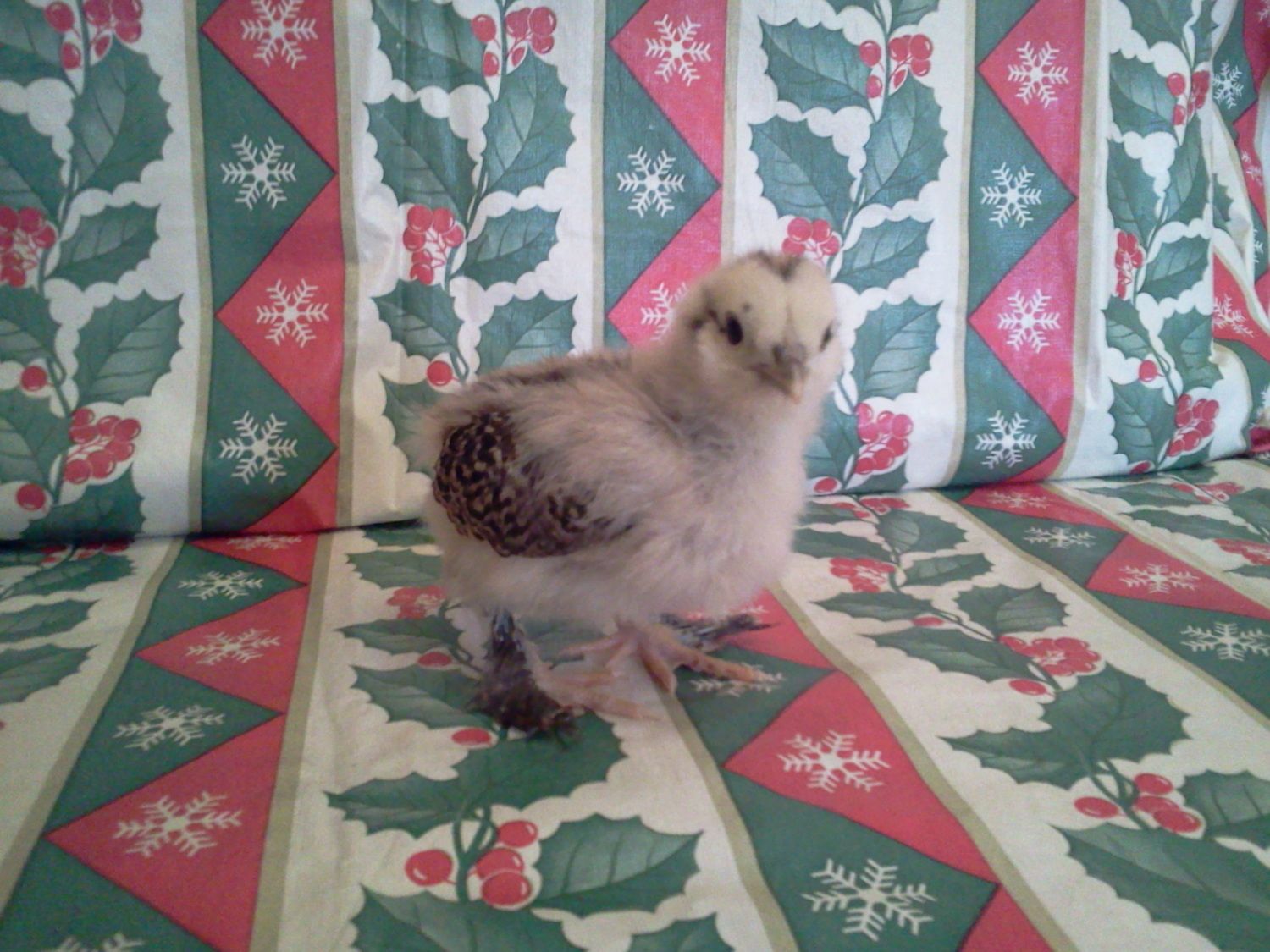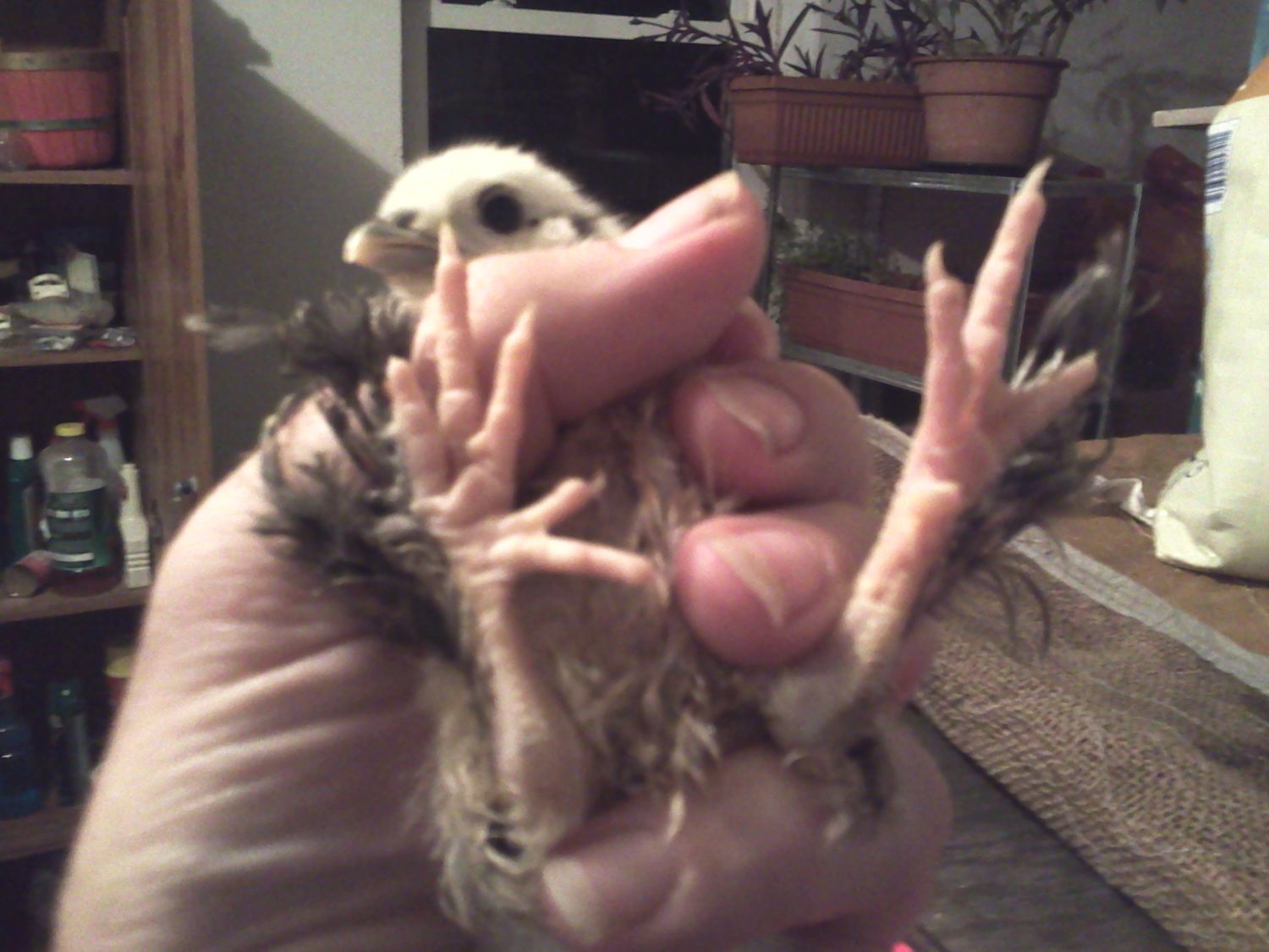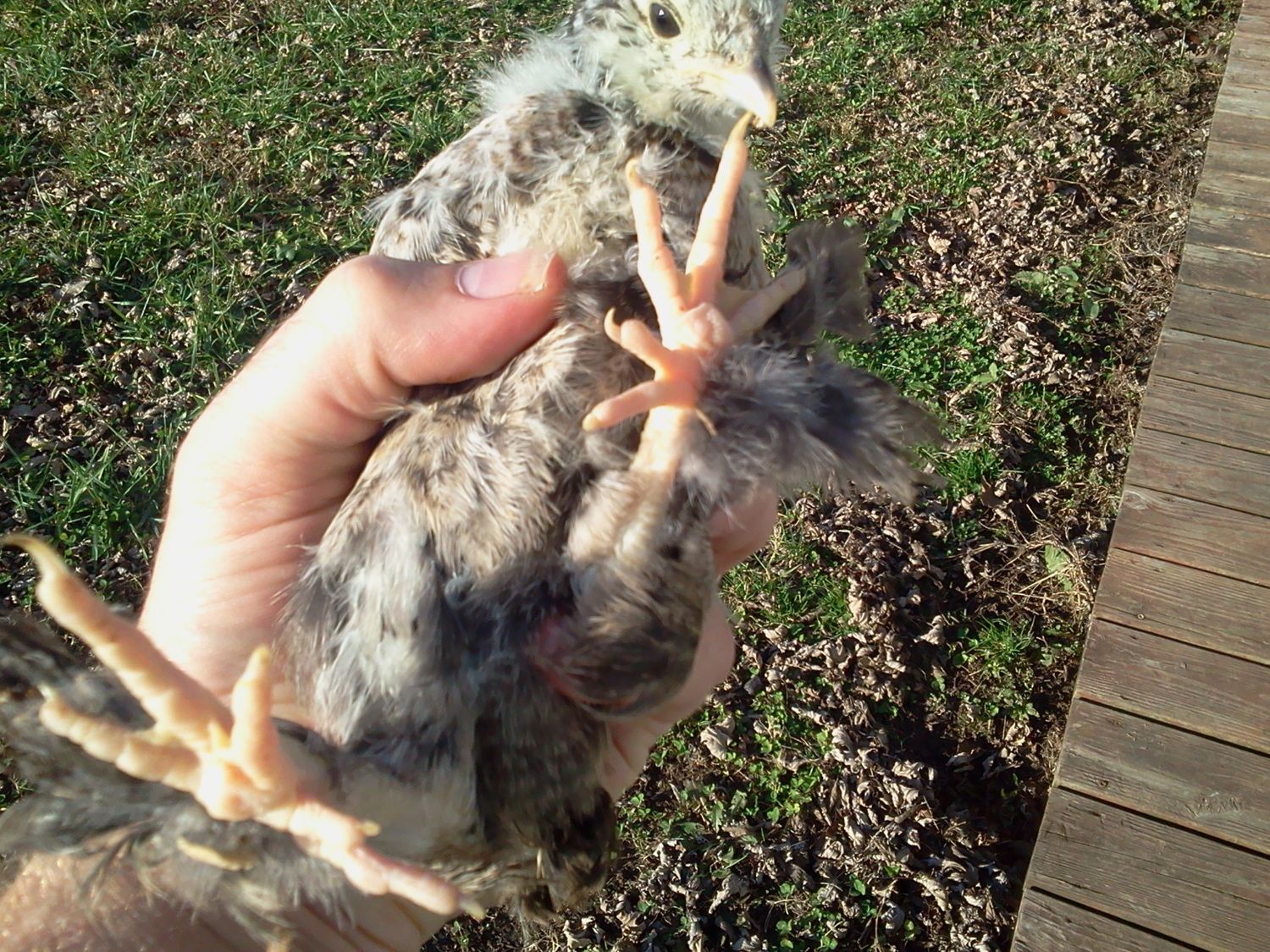 This chick is suppose to be an ameraurcana or EE pullett but it has the whole feathered feet and 5 toed thing going on.