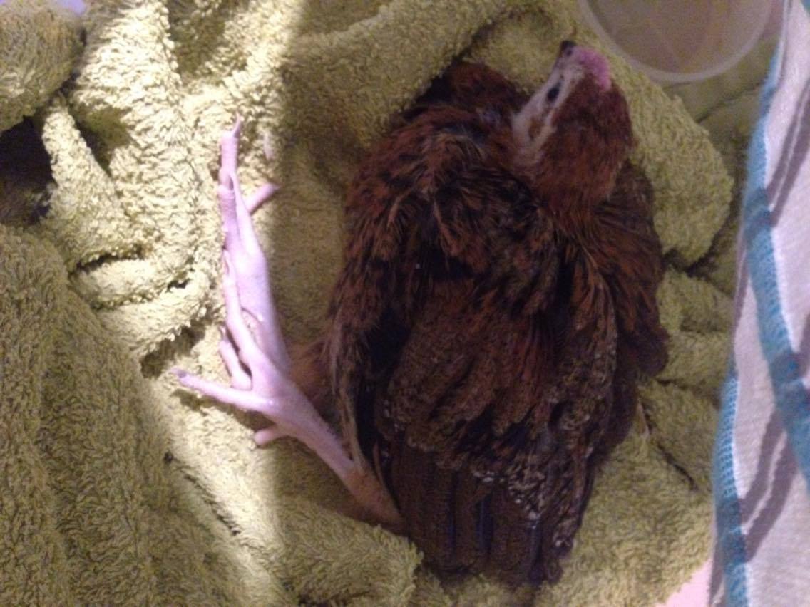 Today I found my 5 week old easter egger lying on her side in her pen. Until today she seemed to be thriving with her sisters with constant access to food, water and a source of heat. One of her legs seems to be completely unresponsive whist she can still move the other (although its pretty weak). She also seems to be breathing a little heavier and is yet to poop. I'm not sure if she's having spasms or if its an attempt to move herself. I haven't found any traces of distress or injuries on the bird and within her poo. She is eating some of her chick feed when I hold it to her and she's also had some sugar water. Recently I moved the chicks outside of the house onto the deck...this is the only real distress that I can think of the chicks going through in the past week. The chicks live in a pen which is covered on the top and bottom and has goof airflow. I use wood shavings which is cleaned out regularly. Today we had a warm day (32 degrees Celsius). The only real contaminant that I can think of is that the chicks tend to kick their bedding into their water which I clean out when I can. I've already checked over her for any ticks and other parasites. Any tips and possible diagnosis for my little bird would be greatly appreciated. There is a picture attached.
