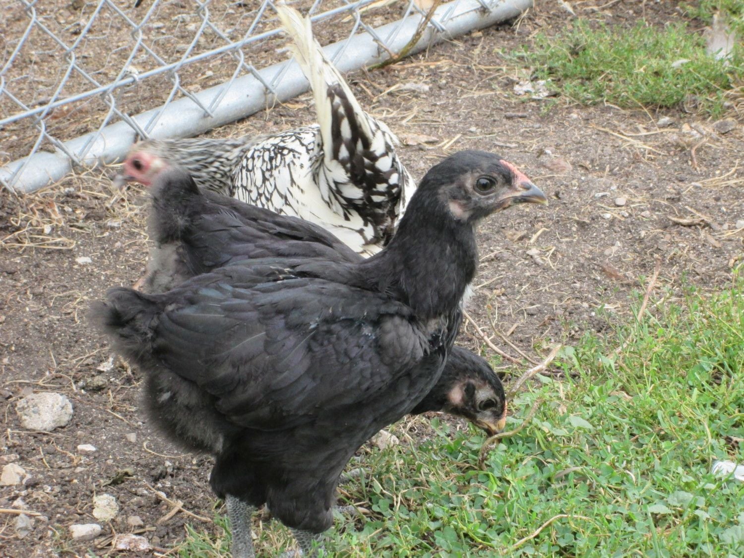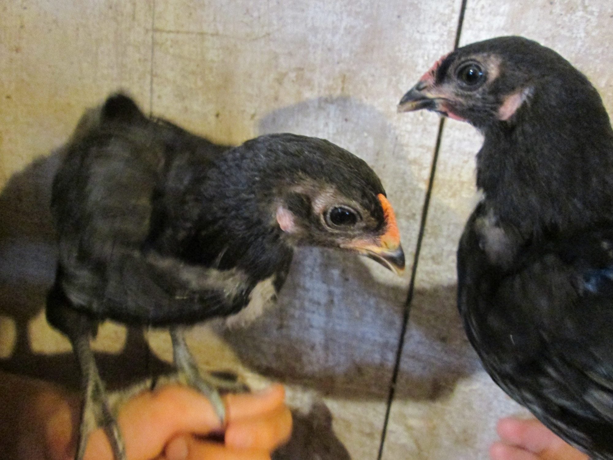 My Easter Egger/Lavender Orpington crosses are 5 weeks old! I kind of suspect they are both cockerels...they have some pretty good comb action going on...we shall see...