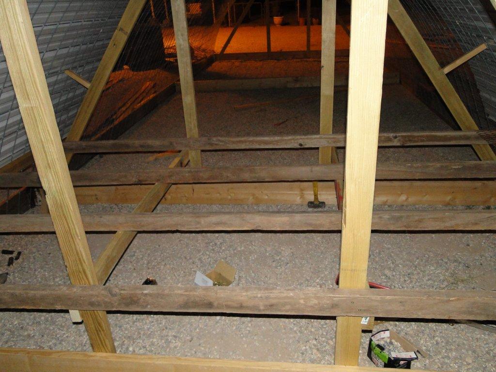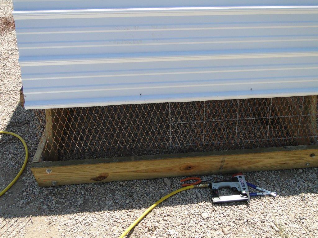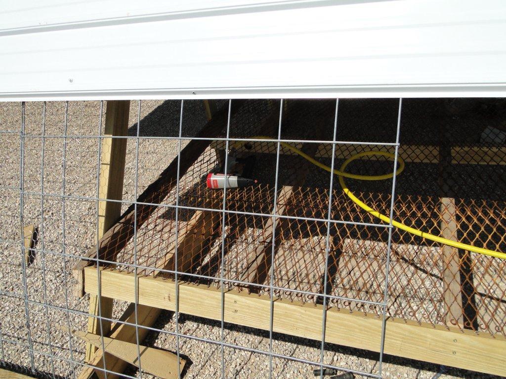 Sequencing tip #2: Build the sides below the floor before you put the floor in. By doing the reverse of the tip, I had to crawl in between the 2x6 and 2x4 in order to staple the sides. There is only 10" of room to squeeze through and it wasn't comfortable for a 6'2" 275# fella to fit through.