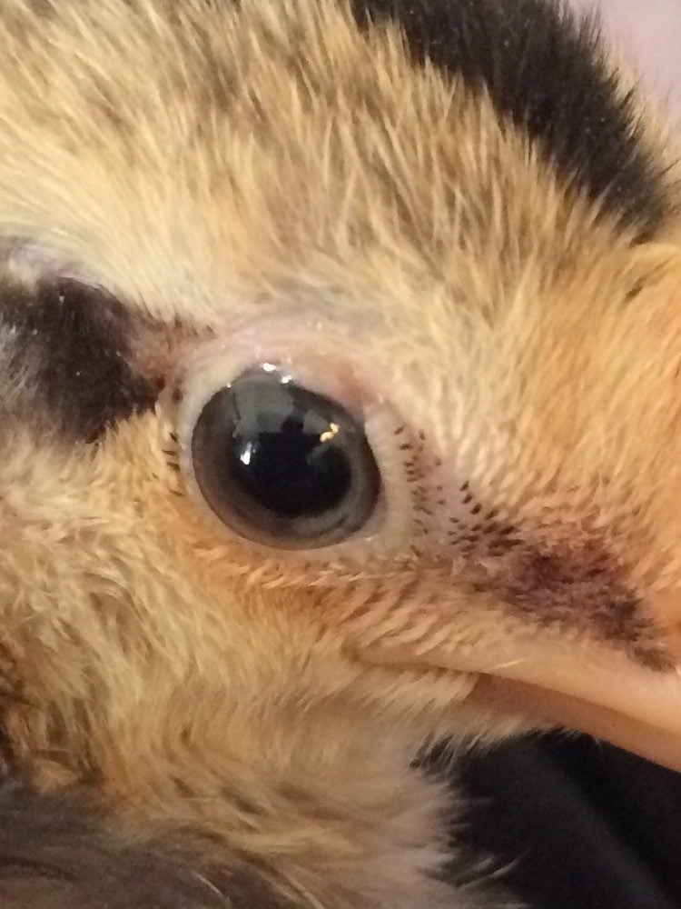 I have a 6 week old chick that has been struggling to grow. I will include a picture of her next to her sister. They are same breed, same age. For weeks now she has been scratching at her eye, and now today I see that it is strange looking. It looks huge compared to the other eye. She was Mareks vaccinated at one day old. I had a verified case of Mareks on my property two years ago, but it was NOT the ocular strain. Can the other strain turn into the ocular strain? It seems unlikely to me. I also have seen in pictures that ocular Mareks causes misshapen pupils. Her pupil looks big and round to me, not abnormal. Can anyone tell me what might be going on with her eye please??