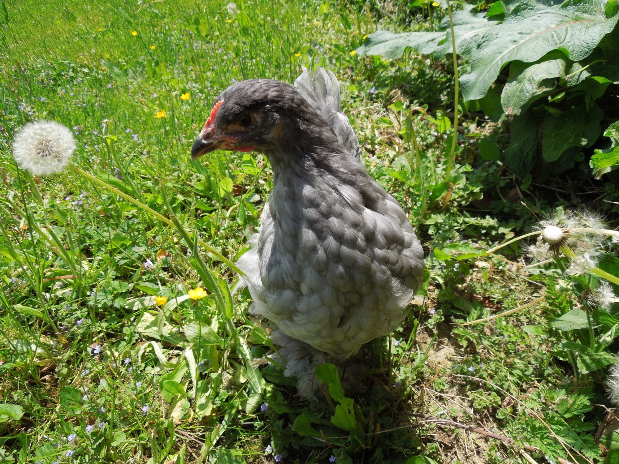 OK some updated pictures. S/he's now 9 weeks and while that comb doesn't seem to have gotten bigger it is still very red. :( No hackle or saddle feather development yet though.