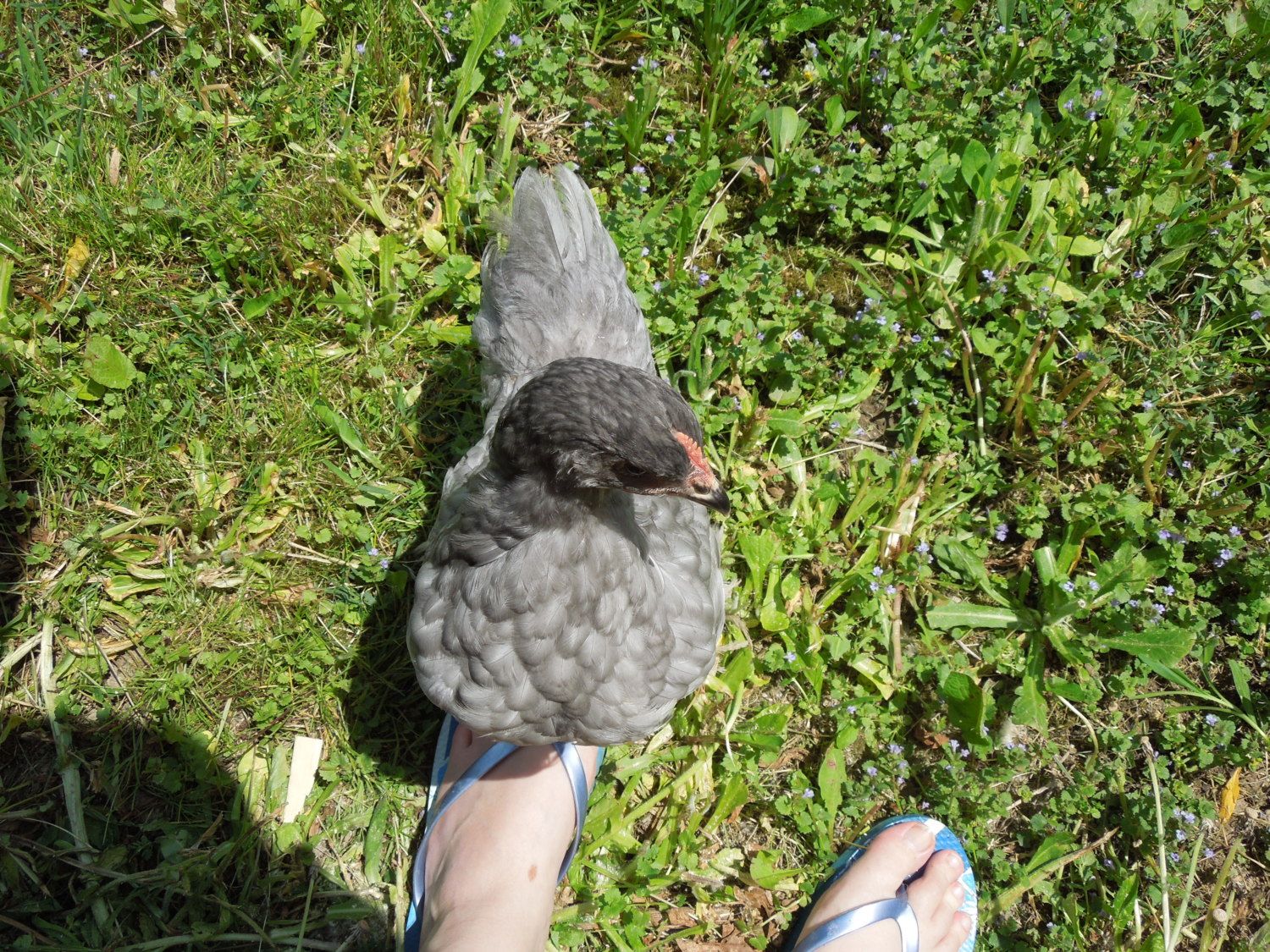 (Please don't mind my toes. lol She didn't like being away from her flock so she kept trying to hide/cuddle)