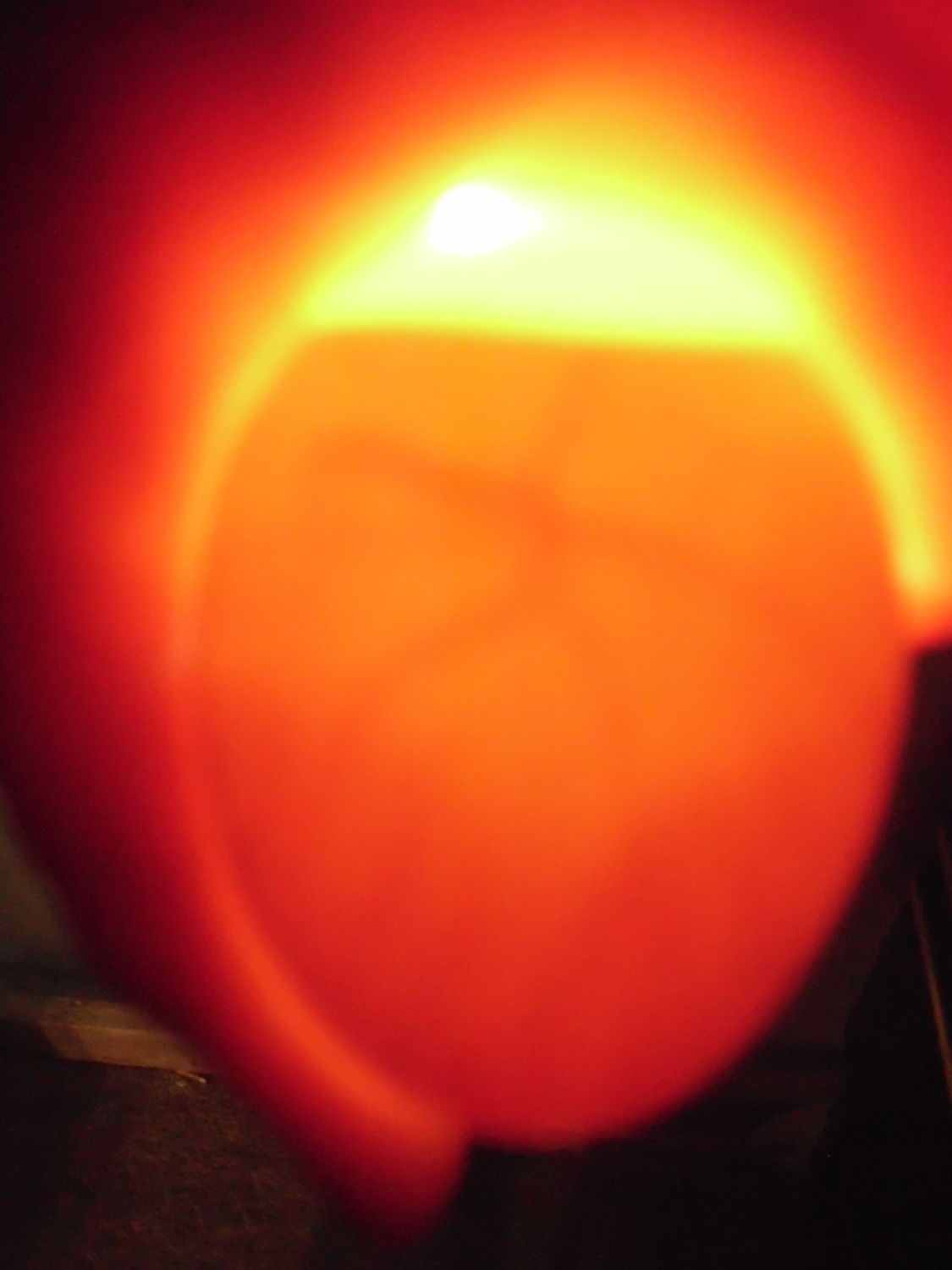 Candling down into the egg lights up the air cell.