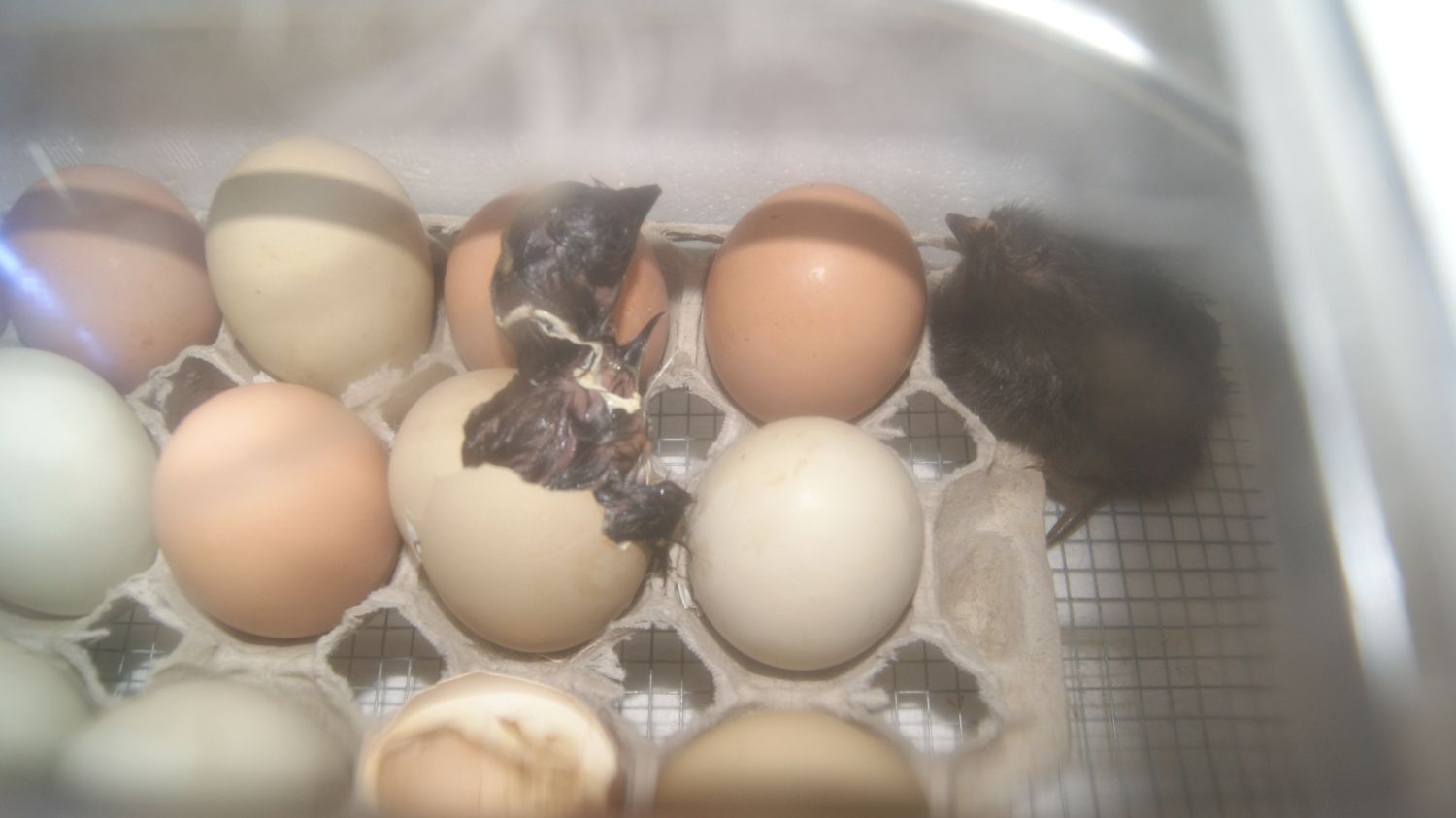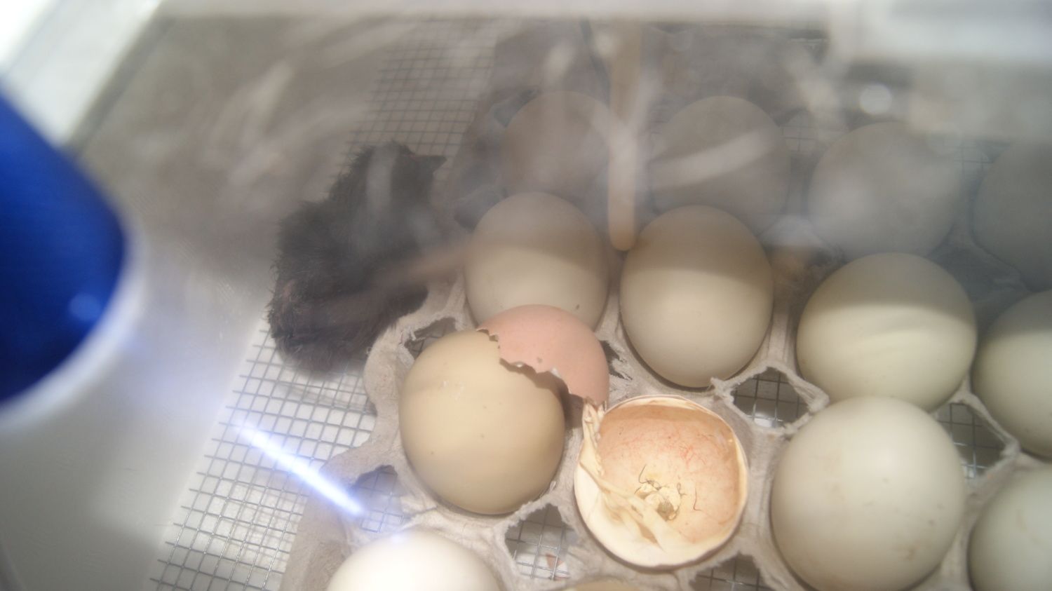 I heard peeping early this morning and soon after two Silkie eggs pipped.2 more Silkie and 6 Golden Cuckoo Marans eggs to go.