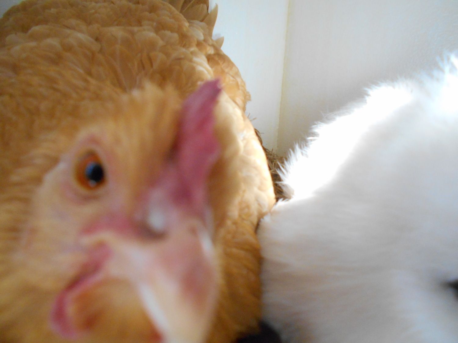 The light colored one in this picture and the one below is a Silkie.