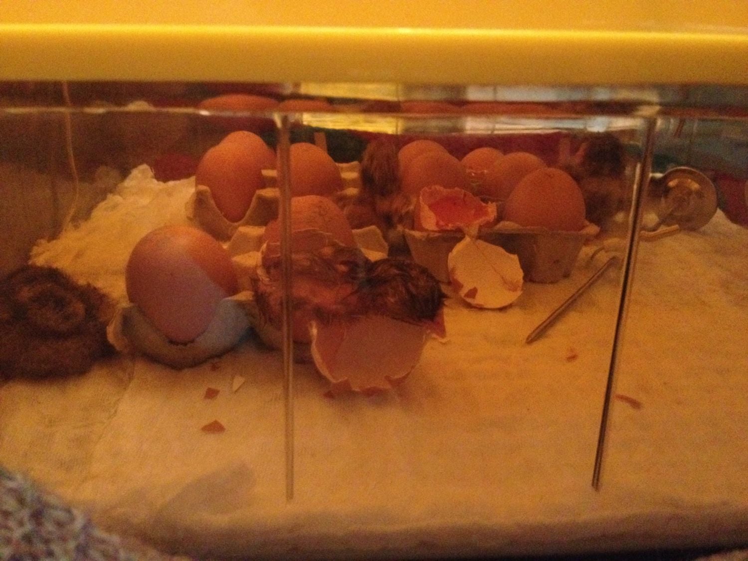 All in all, 6 out of the 12 wriggling eggs that went into lockdown hatched. The suspicious 13th was an early quitter before it went into lockdown, as suspected and eggtopsies showed 1 of the other 6 shrinkwrapped and the other 5 didn't even start absorbing their yolk sacs.