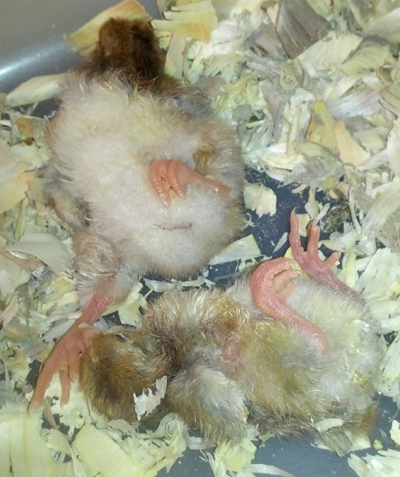 Question... Anyone here good at determining the gender of newly hatched Welsummer chicks? I only have two, and they look somewhat different... but neither has markings developed enough to determine either way. =/ I'm hoping one is a pullet. I'm just not sure. =/ The larger one has a much darker stripe and more obvious white side strips, but I can't see the "eyeliner" I hear about. At least not yet.