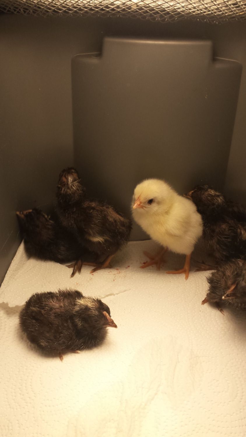 He can straighten it out. It's much better than before. He eats, can get up and walk around. Sometimes he flips over, but gets up on his own. If I wasn't seeing improvement, I'd cull him. I should have anyway, but...I need to harden up a bit. I may have to ask someone to cull this one for me if it comes to that. I tend to get attached to the underdogs. It's probably why I'm fairly hands off my young birds. Sigh.