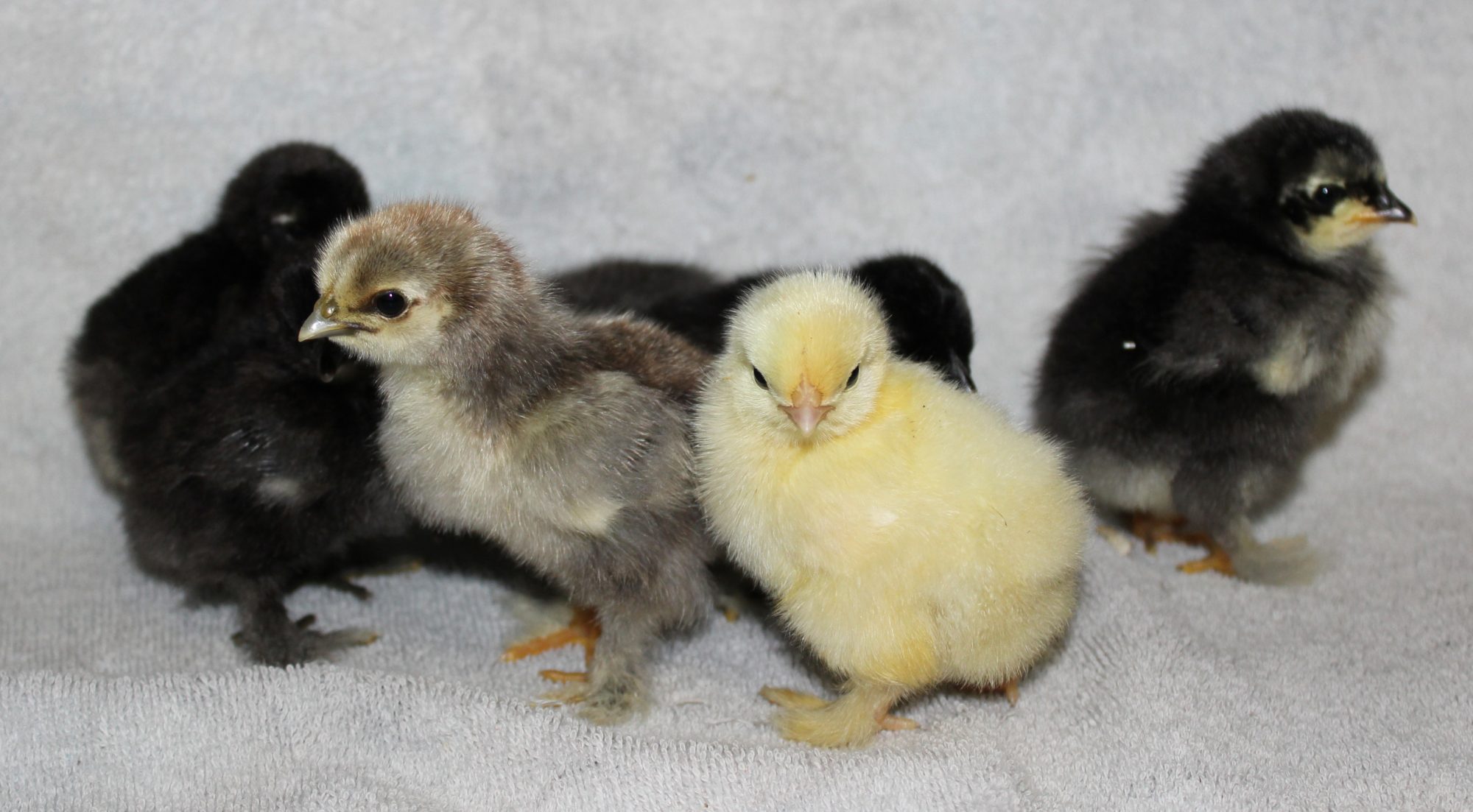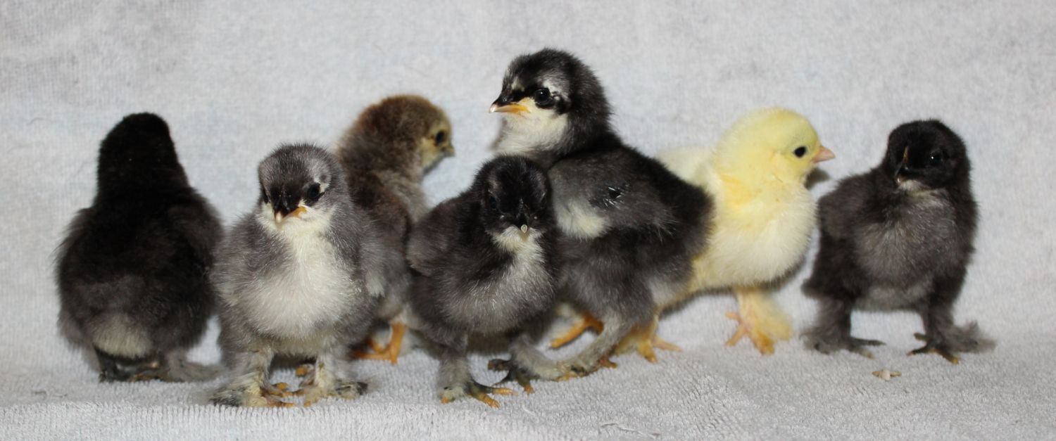 The Bantam Crew: 6 - 1/4 Silkie 3/4 Cochin (3 blacks, 2 blues and a ?) and 1 White Cochin