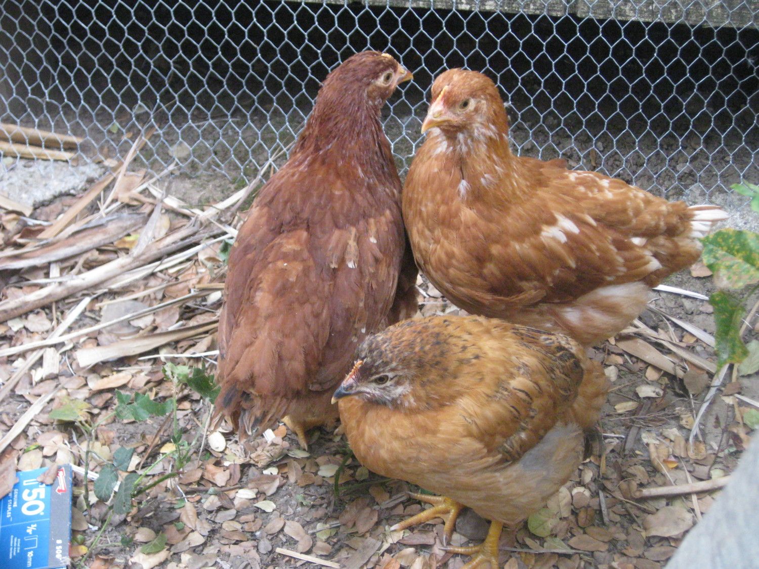 4. Three pullets, Production Red on the left, Red Star on the right and Easter Egger in the front.