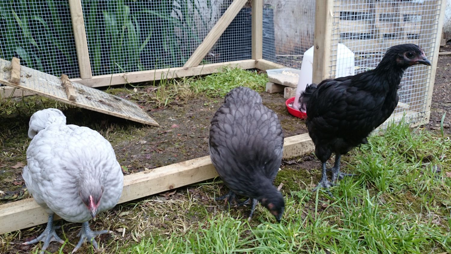 The splash is definitely a cockerel, blue is a pullet...black is unsure. The comb looks like pullet, but the tail is a tad suspicious. Going with 1 cockerel, 2 pullets for now.
