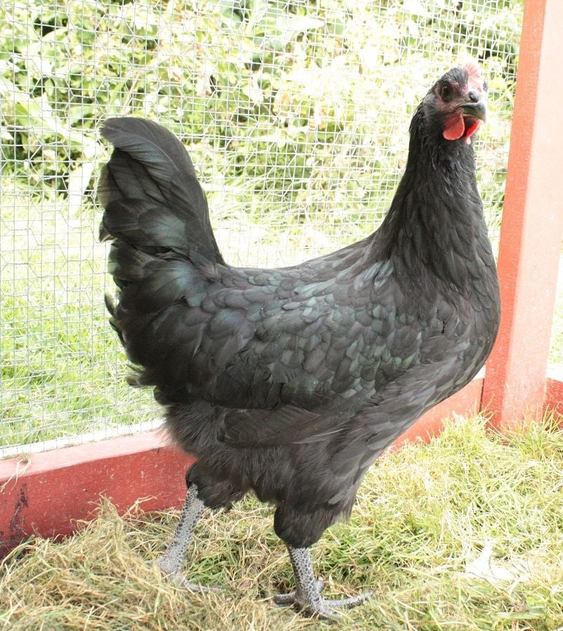 x2Looks like a pullet to me. Some black chickens get a green shine to their feathers, cockerels and pullets. I have 4 black cochin pullets and their feathers are just like this (except, well, because of their breed, more poofy), along with my Crevecoeurs, which are chicks. I'm also not seeing any oily feathers which indicate cockerel, which should've developed by now if it were to be a roo.