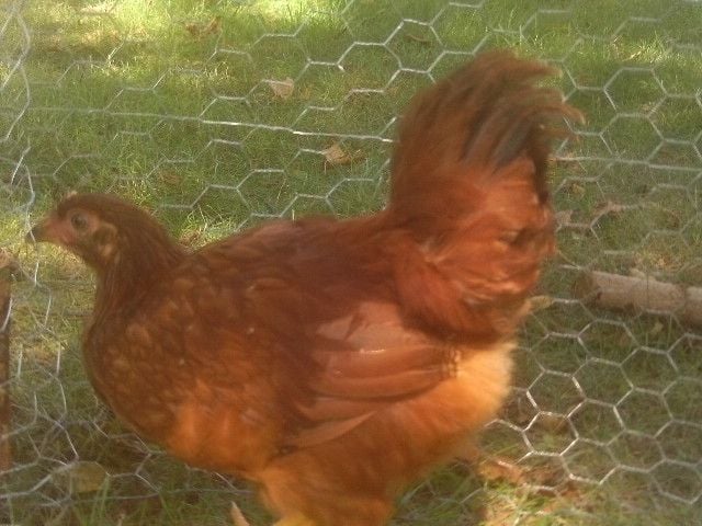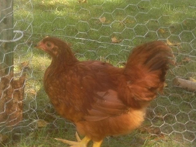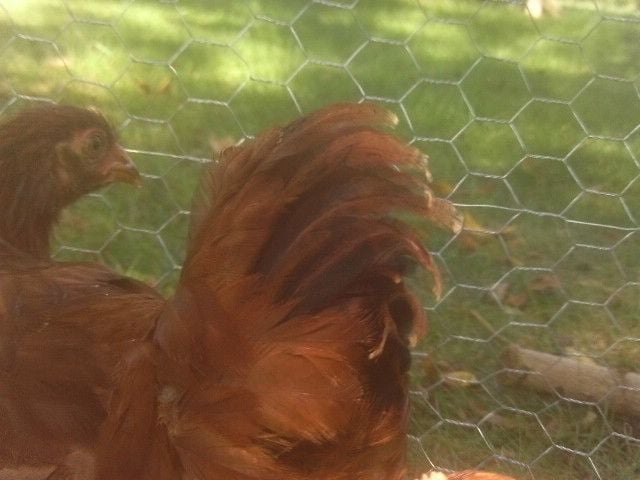 Is this 8-week old Cherry Egger (Red Star) possibly a cockerel instead of a pullet? Her tail feathers are becoming very long and pointed at the ends and drape down slightly as seen in some of the photos. When "she" walks around the yard with the others (five Barred Rocks that are the same age and four other Cherry Eggers one week younger), she tends to stand in a more upright position and seems to "keep watch" over the others. No crowing that I know of yet. I know that time will tell the truth, though!
