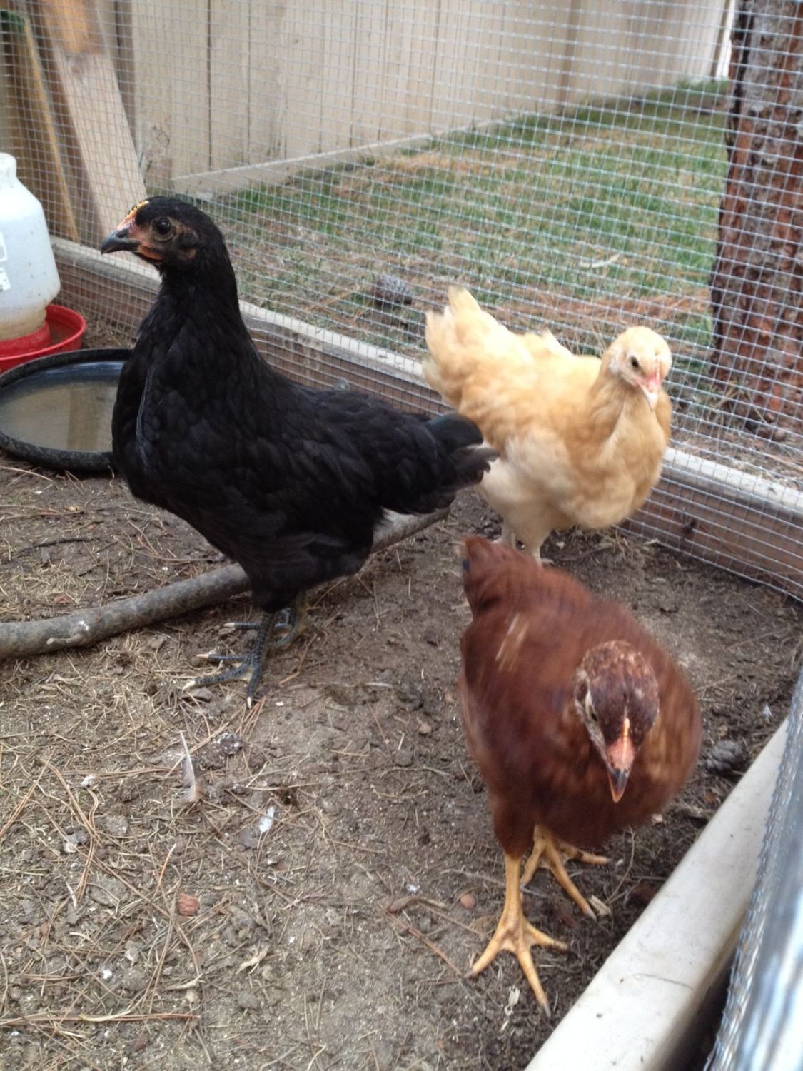 Pictures 1 & 2 has Robin, Sunny and Heaven in them. Picture 3 is Red - which is the one we feel more likely to be a roo as she seems to be more aggressive and brave.