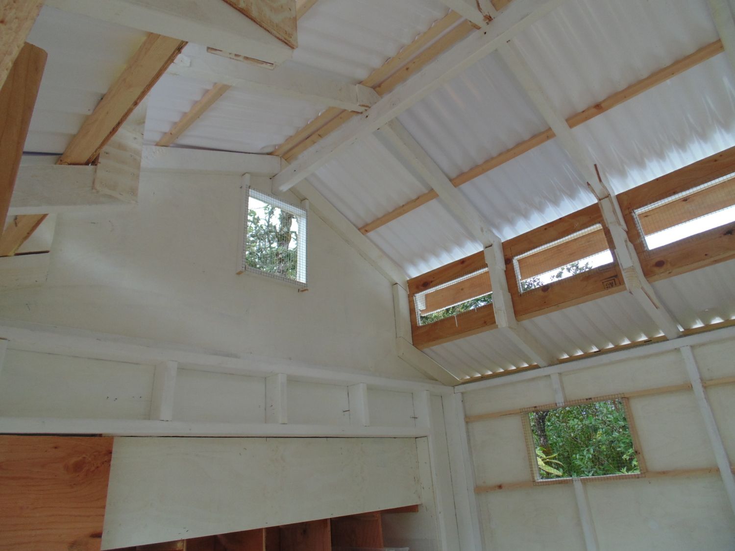 that sounds good i have external nest boxes i plan to add a space under neth that will be glassed in to let it be a dusting area with plenty of lightI have a 8 X 8 coop (converted from a shed) with an 8 X 14 hoop run and I am very happy with it. I currently have five hens and two roosters. Keeping the roosters over the winter for warmth and will cull them in the spring and get five started pullets. Having worked with the coop since last summer, I have decided not to keep more than ten chickens. Could squeeze in a couple more but any more than that would be tight. I put a roost and poop board along the left side wall and a portion of the back wall (like an "L") and I have three nest boxes on the balance of the back wall (lower than the roost). I hang the feeder under the poop board and have a dusting box under the poop board as well. On the right side wall there is a window, the waterer and pans for grit and oyster shell. Plenty of floor space; I can walk around the coop to do chores comfortably without getting in the way of the flock. The only improvement I'm considering in the summer is to make the nest boxes external. That would give even more floor space.